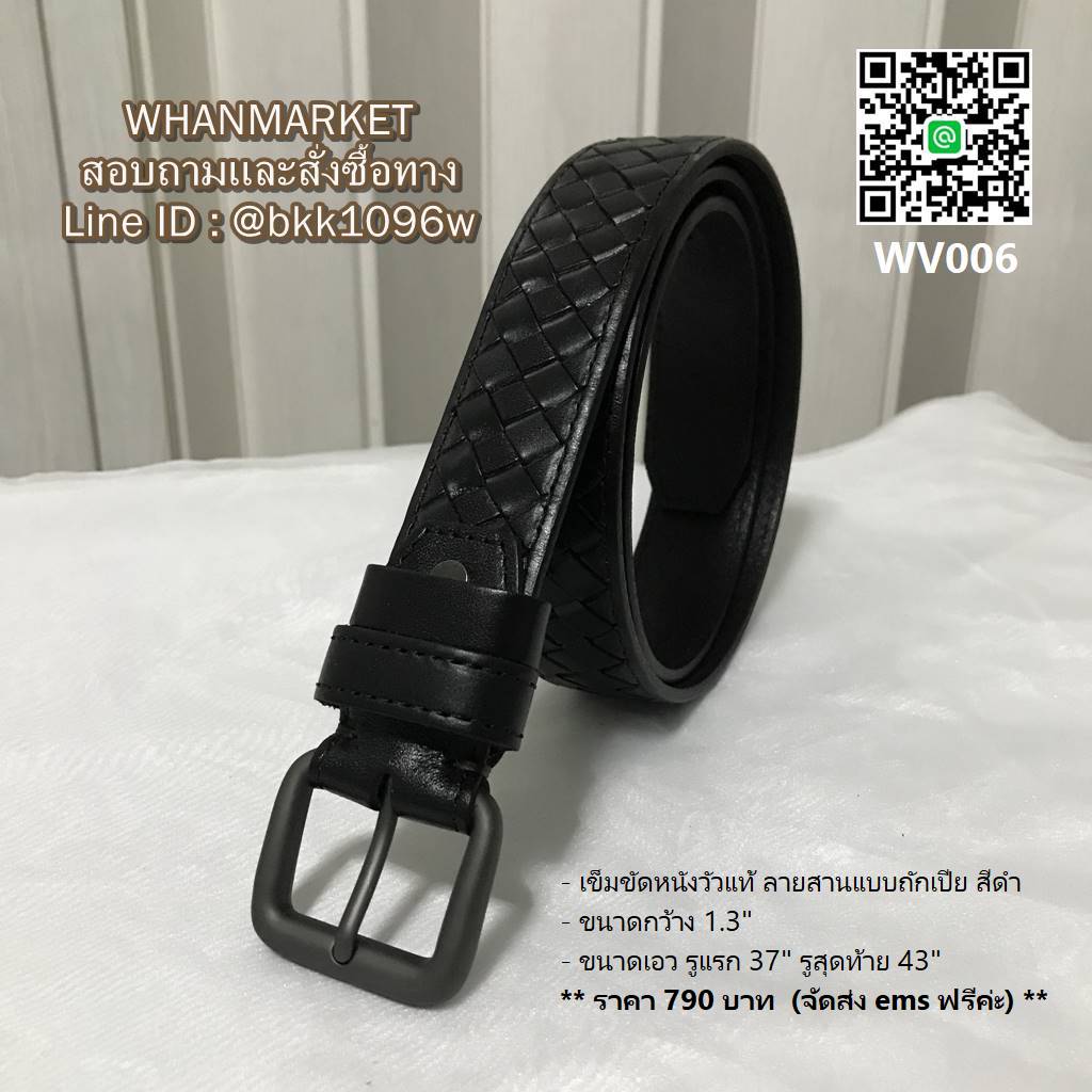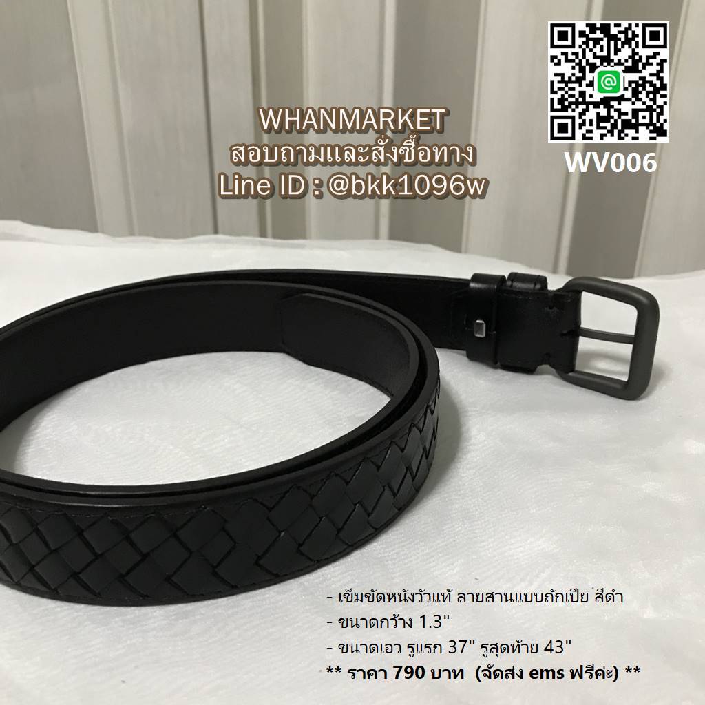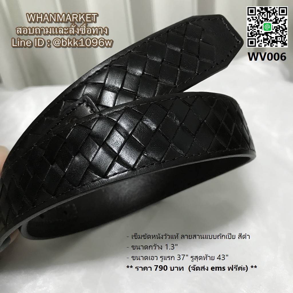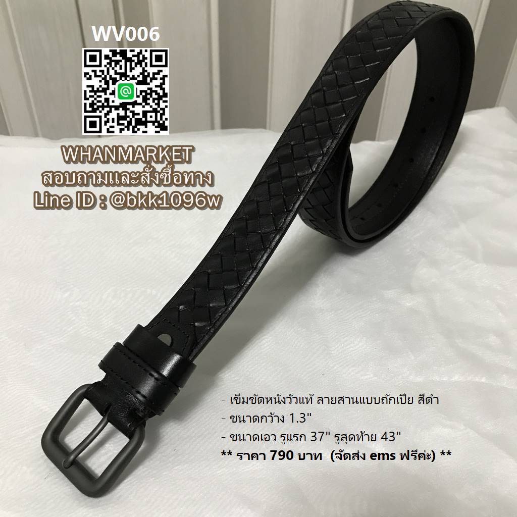 WhanMarketเข็มขัดหนังวัวแท้ ลายสานแบบถักเปีย สีดำ ทำให้ดูโดดเด่น เย็บเก็บงานอย่างปราณีต ท้องหนังสัมผัสเรียบ
