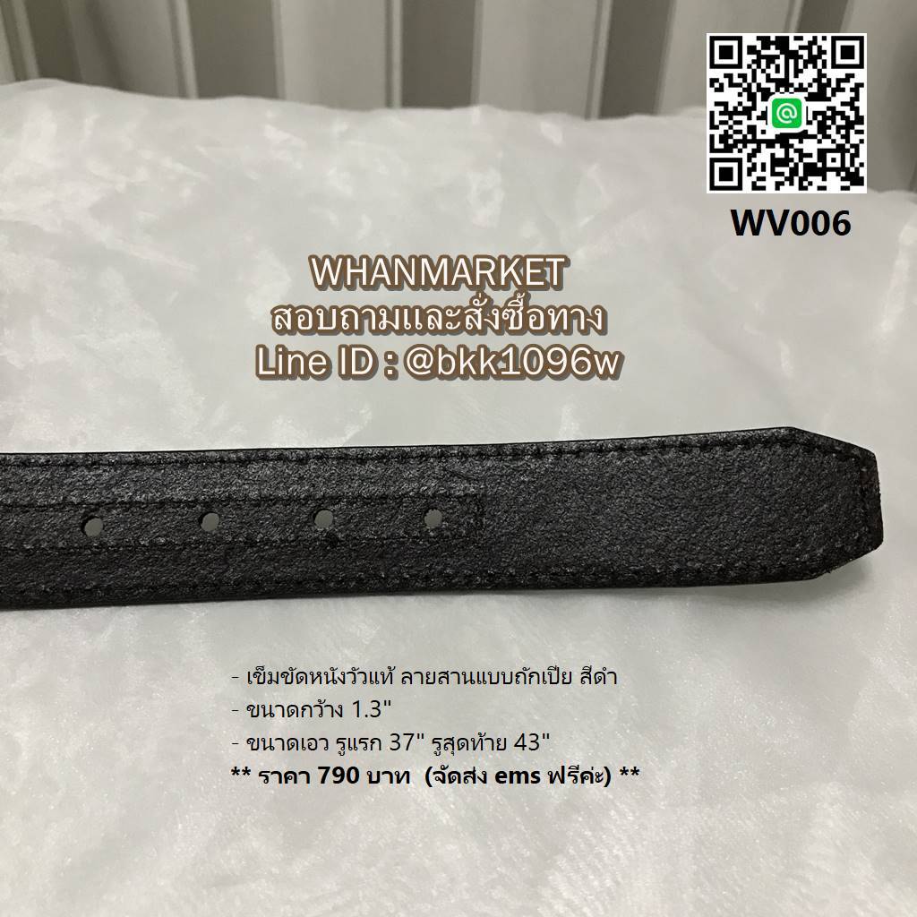 - ขนาดเอว รูแรก 37 นิ้ว รูสุดท้าย 43 นิ้ว ความยาวทั้งเส้น 47 นิ้ว