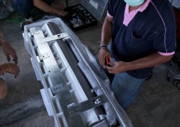 ใช้ปั้มน้ำแรงดันสูงฉีดอัดล้างท่อน้ำทิ้ง และชิ้นส่วนต่างๆ อย่างละเอียด
