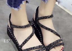 WhanMarketรองเท้าลำลอง แบบสวม หนังนิ่ม ประดับคริสตัลระยิบระยับ ดีเทลสวมไขว้ สายรัดส้นยางยืด กระชับเท้า ส้นยางกันลื่น น้ำหนักเบา สูง 1.5 นิ้ว แมทซ์เสื้อผ้าง่าย ใส่ได้บ่อย แนะนำเลยค้า