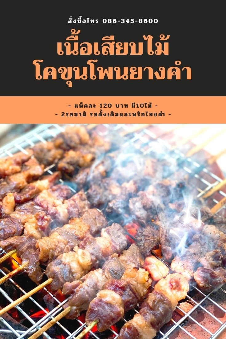 Darakorn Travel#เนื้อโคขุนโพนยางคำ แบบเสียบไม้ หมักปรุงรสแล้วเรียบร้อย