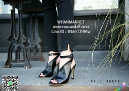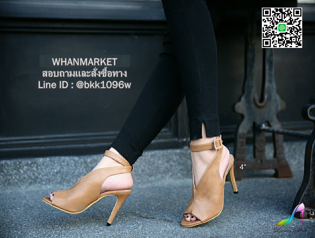 WhanMarketรองเท้าแฟชั่น ส้นสูง ทรงบูท วัสดุหนังPU หน้าVเปิดส้น รัดข้อเข็มขัด หนังนิ่มเก็บเท้าเรียวสวย เซ็กซี่ดูแพง ส้นสูง 4 นิ้ว งานคุณภาพดี
