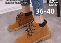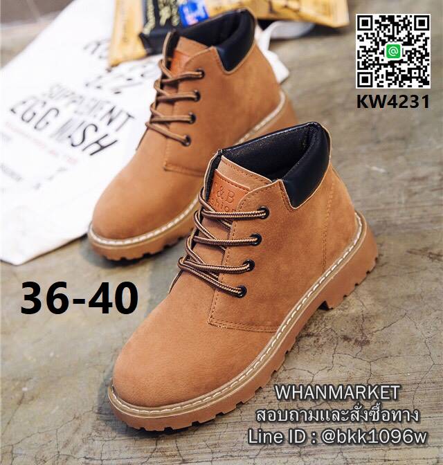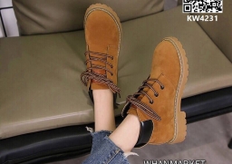 WhanMarketรองเท้าบูท ทรงหุ้มข้อ ความสูงส้น3cm สวมใส่สบาย พื้นกันลื่นได้ดี วัสดุทำจากหนังกลับ ทรงสวยเท่เก๋ แมทซ์กับเสื้อผ้าได้หลายแนว