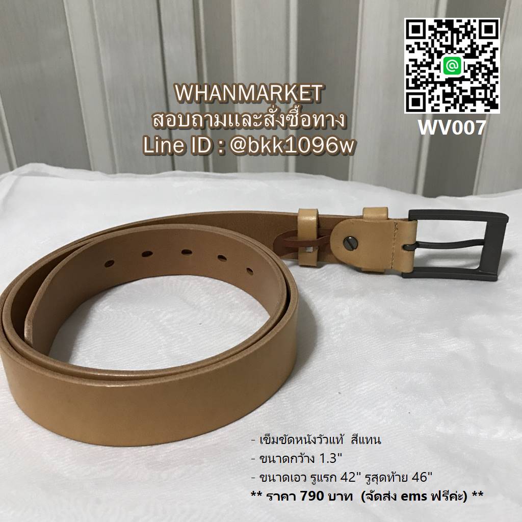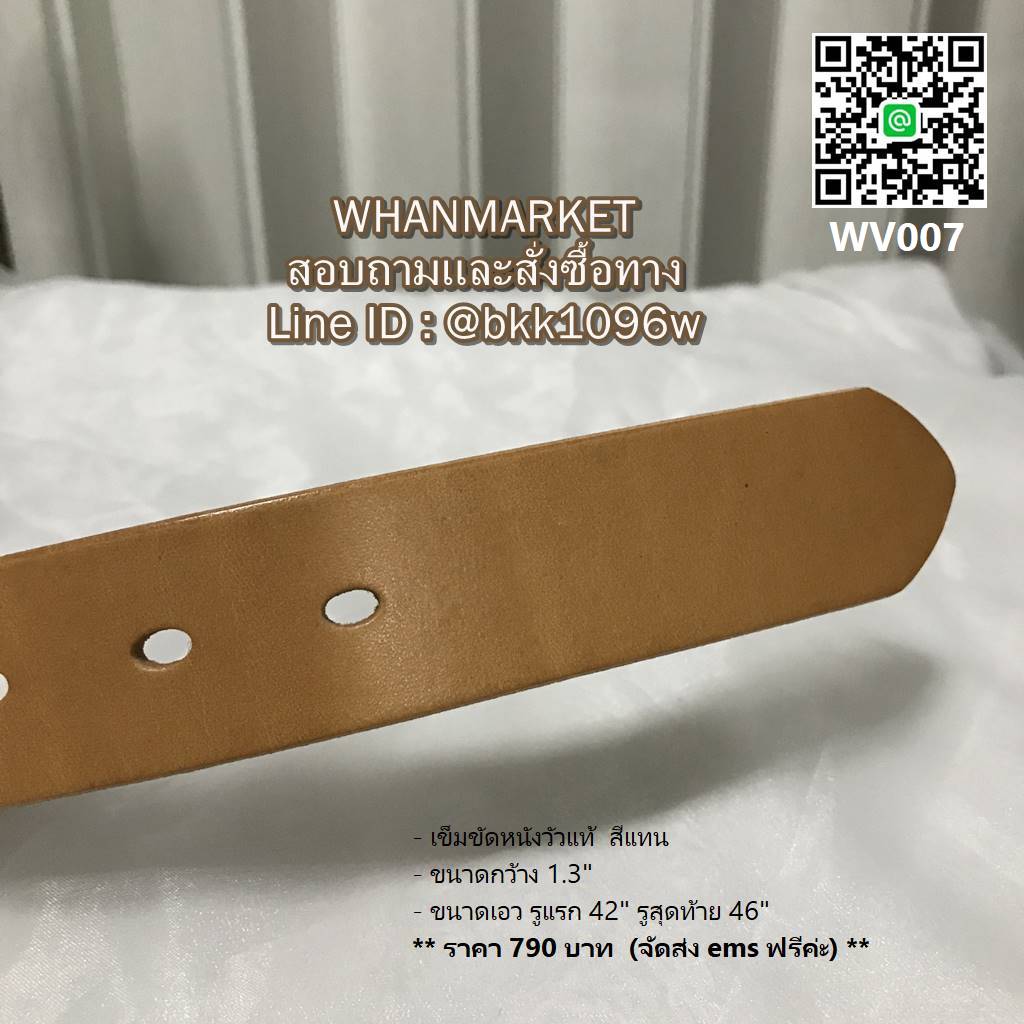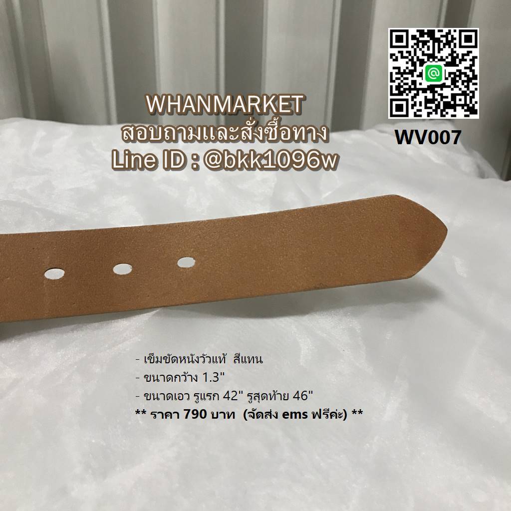 - ขนาดเอว รูแรก 42 นิ้ว รูสุดท้าย 46 นิ้ว ความยาวทั้งเส้น 50 นิ้ว