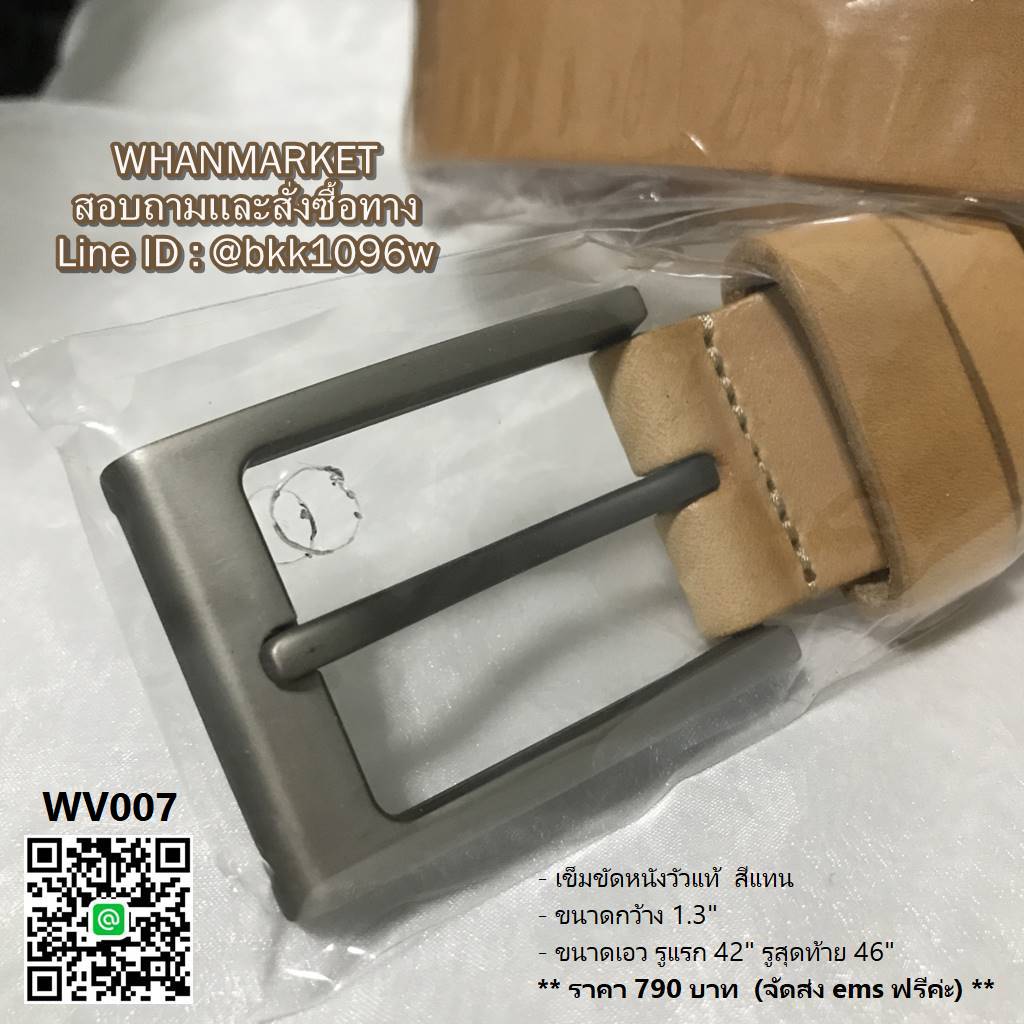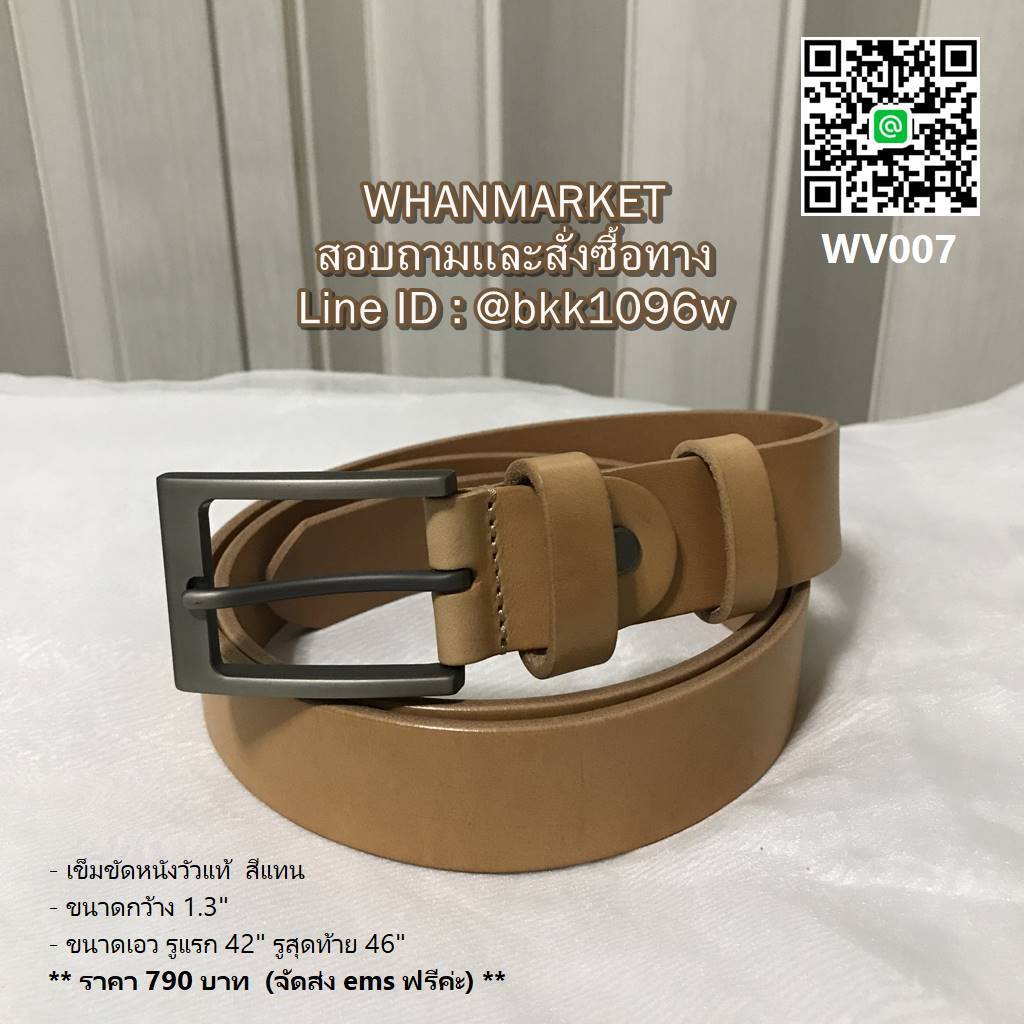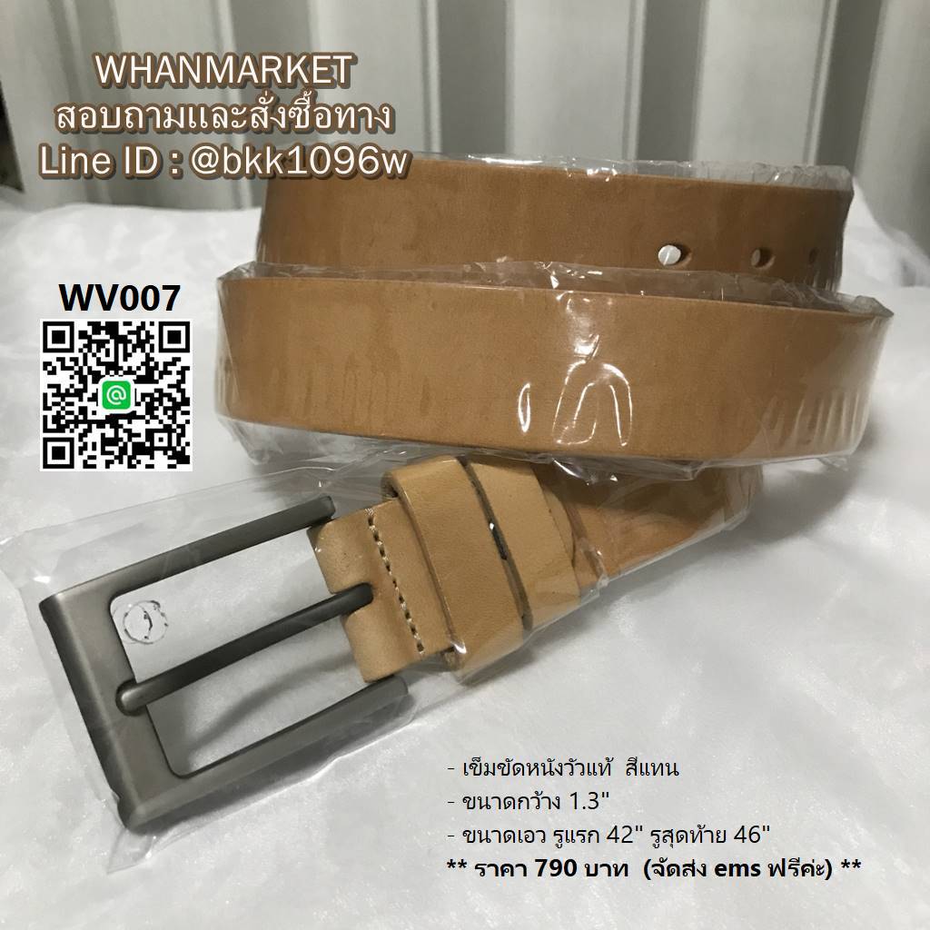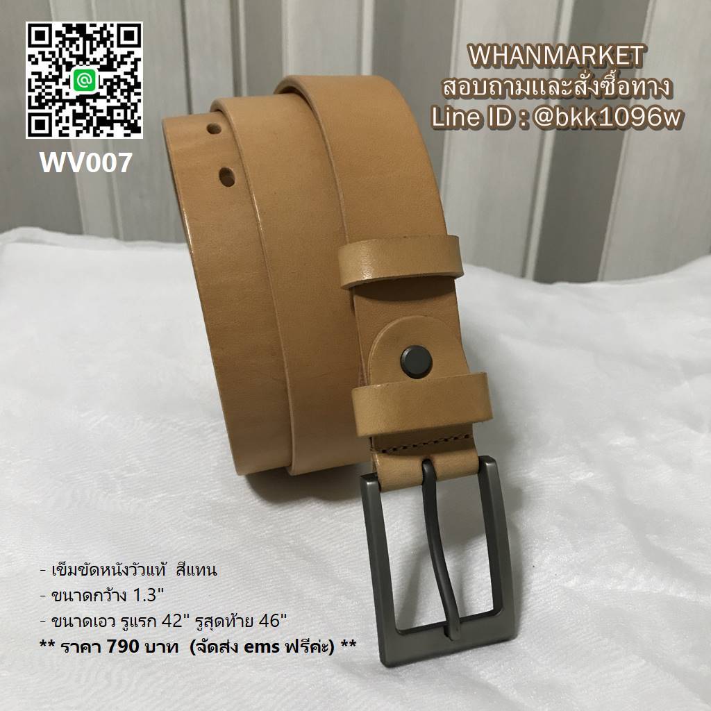 - ขนาดเอว รูแรก 42 นิ้ว รูสุดท้าย 46 นิ้ว ความยาวทั้งเส้น 50 นิ้ว