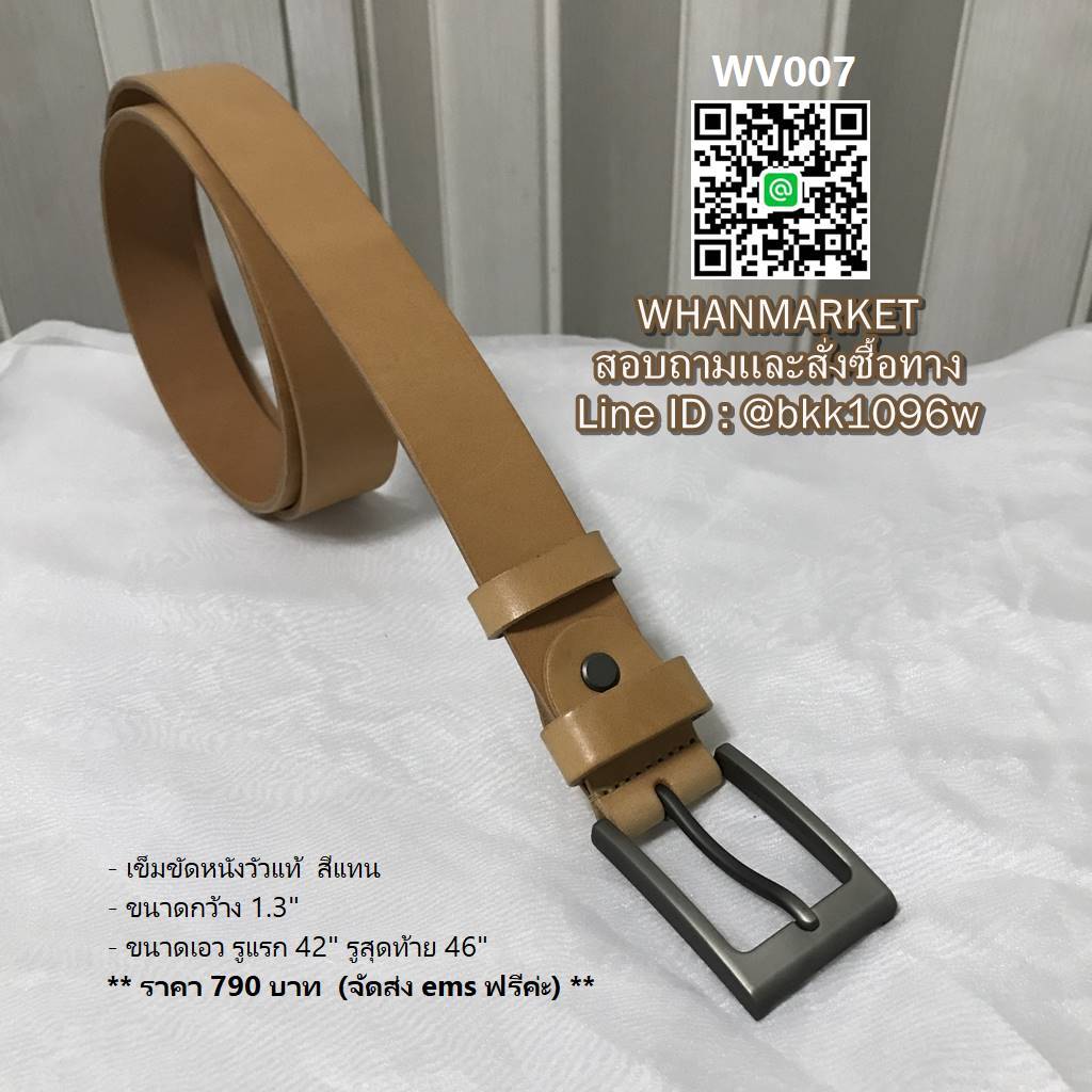 WhanMarketเข็มขัดหนังวัวแท้ งานปราณีต ใช้งานได้ทนทาน สีแทน โทนเรียบง่าย ใส่ได้เหมาะกับทุกงาน ท้องหนังสัมผัสเรียบ JM001