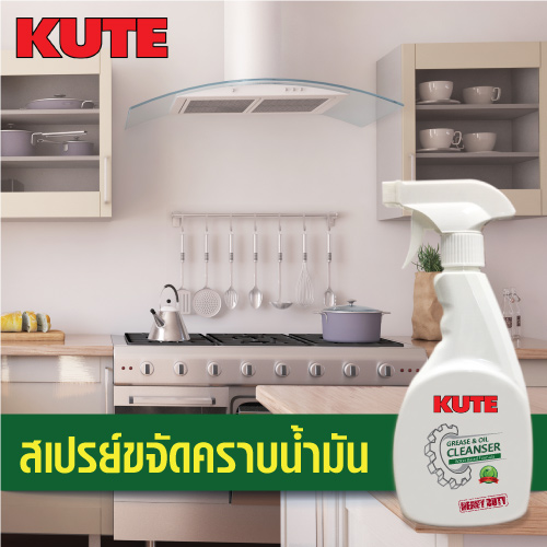 น้ำยาขจัดคราบน้ำมันจากออสเตรีย น้ำยาล้างคราบน้ำมันฝังแน่น ล้างเครื่องดูดควัน ล้างเตาทำอาหาร ใช้งานง่าย ไม่เปลืองแรงขัด แค่ฉีดทิ้งไว้แล้วเช็ดออกด้วยผ้าชุบน้ำสะอาดคราบมันที่ฝังแน่นก็ออกได้อย่างง่ายดาย สนใจน้ำยา KUTE สำหรับทำความสะอาดคราบน้ำมัน ติดร้านอาหารหรือห้องครัวของท่านไว้