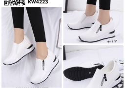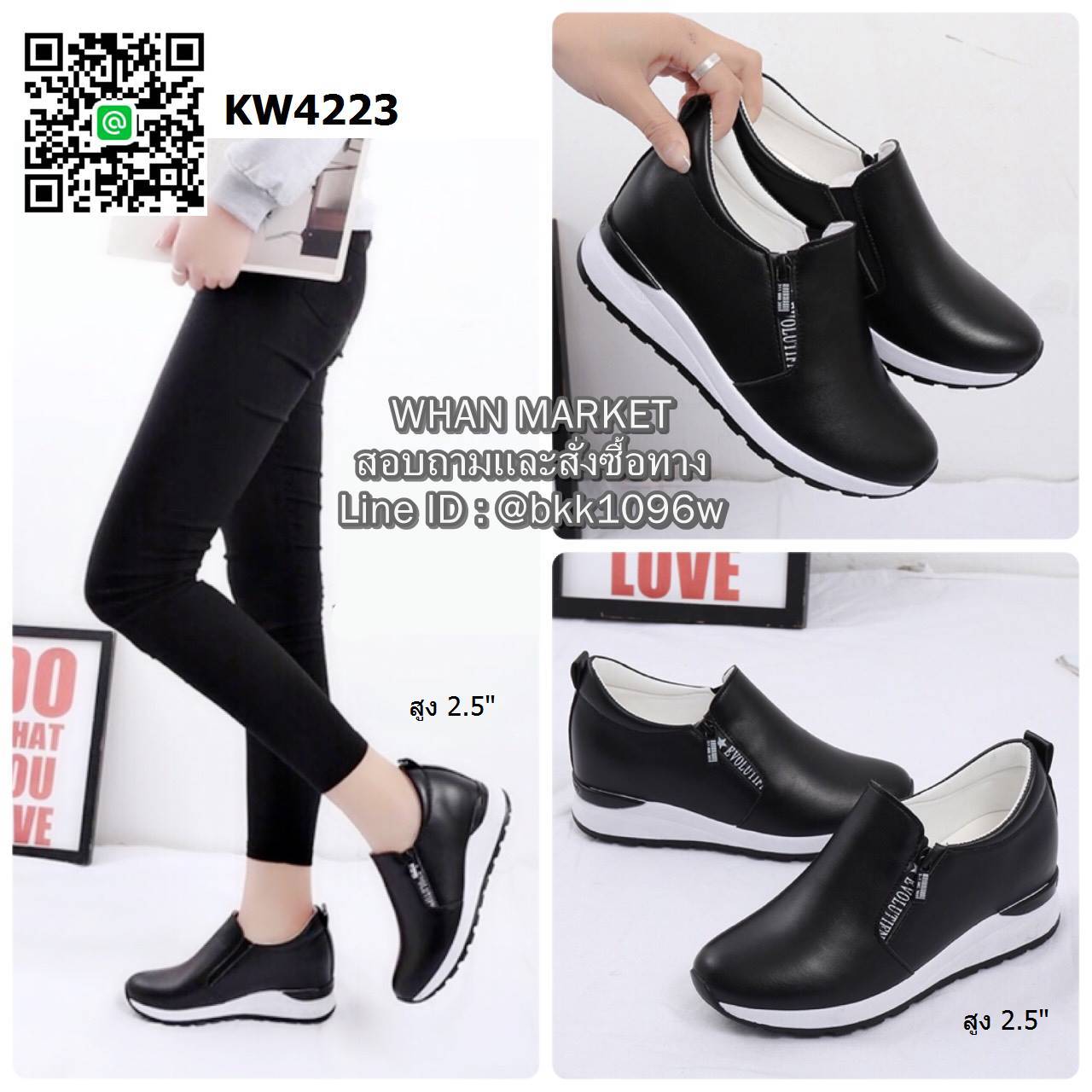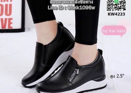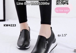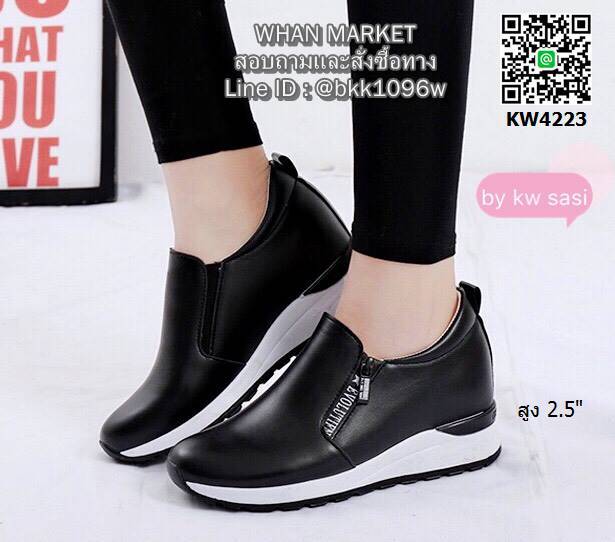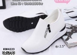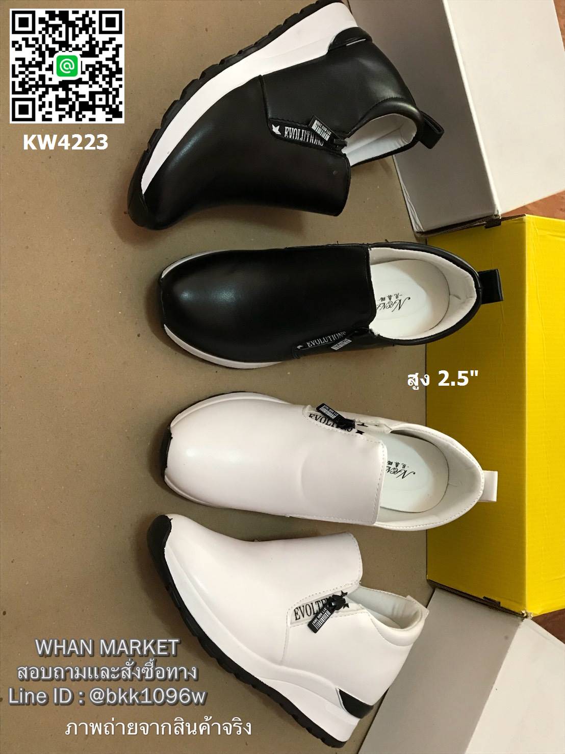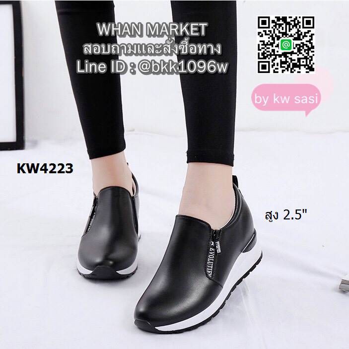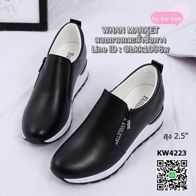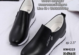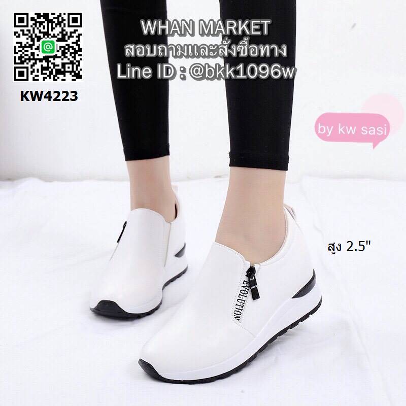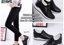 WhanMarketรองเท้าผ้าใบมัฟฟิน นำเข้า สไตล์เกาหลี เสริมส้น1.5 เสริมภายใน 1นิ้ว วัสดุรองเท้าทำจากหนังนิ่ม pu ทำความสะอาดง่าย ด้านหน้ามีซิป สวมใส่ง่าย น้ำหนักเบา สวมใส่สบาย