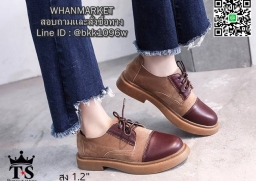 WhanMarketรองเท้าคัชชูหนัง สไตล์เกาหลีวินเทจ วัสดุผ้าสักกะราด + หนัง PU คุณภาพดี พื้นแต่งหนังตัดขอบหัวเท้าและที่ผูกเชือก ทรงสวยโดดเด่น ไม่ซ้ำใคร ให้ลุคแนวๆเท่ห์ๆ สาวสไตล์นี้ควรมีครอบครองนะจ๊ะ!! ดีต่อใจใครๆก็ชอบบบ