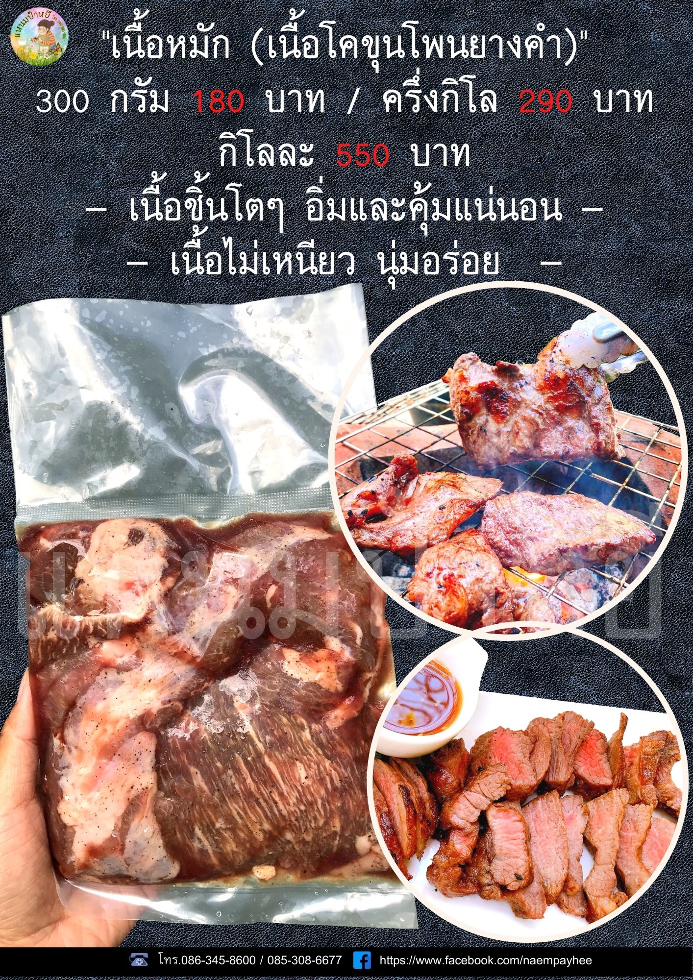 • เนื้อหมักปรุงรสโพนยางคำ เนื้อชิ้นโตๆ อิ่มและคุ้มแน่นอน