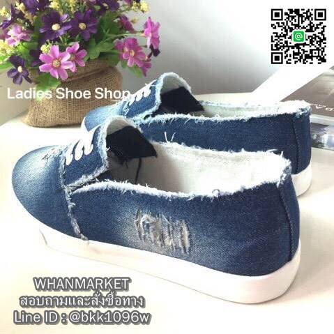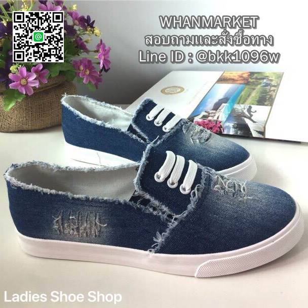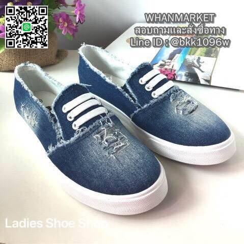 WhanMarketรองเท้าผ้าใบ แบบสวม ผ้ายีนส์ แต่งสุดแนวว พืนยางกันลื่นอย่างดี งานดี ใส่สบายมากๆคร้า