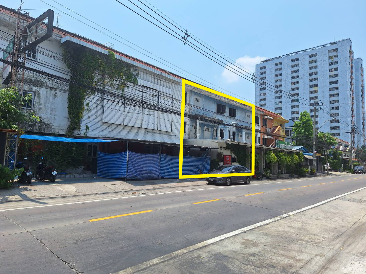 - ติดถนน ตั้งอยู่ในศูนย์กลางธุระกิจ ขายพร้อมสิ่งปลูกสร้าง โครงสรางตึก 3ชั้น ตามสภาพ