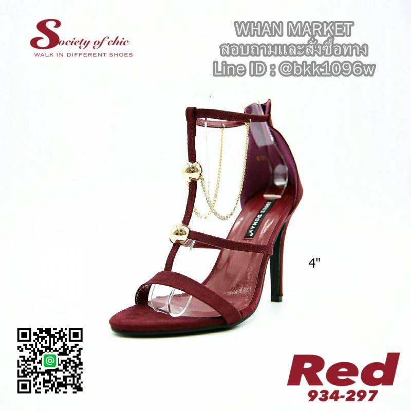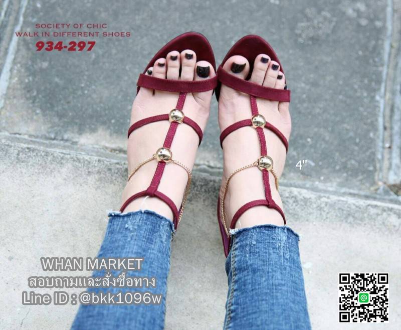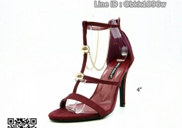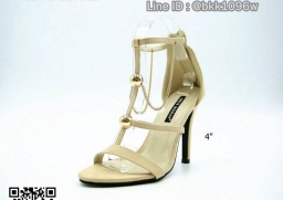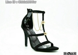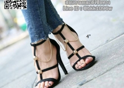 WhanMarketรองเท้าส้นเข็ม สายคาดหน้าหนังนิ่มประดับด้วยโซ่ทอง สูง 4 นิ้ว เก๋และเริ่ด เปรี้ยวซ่าสไตล์สาวทันสมัย แมทกับชุดได้ทุกสไตล์
