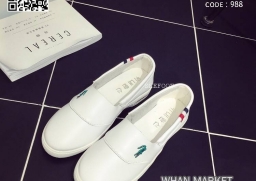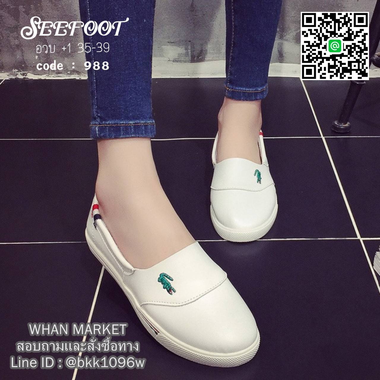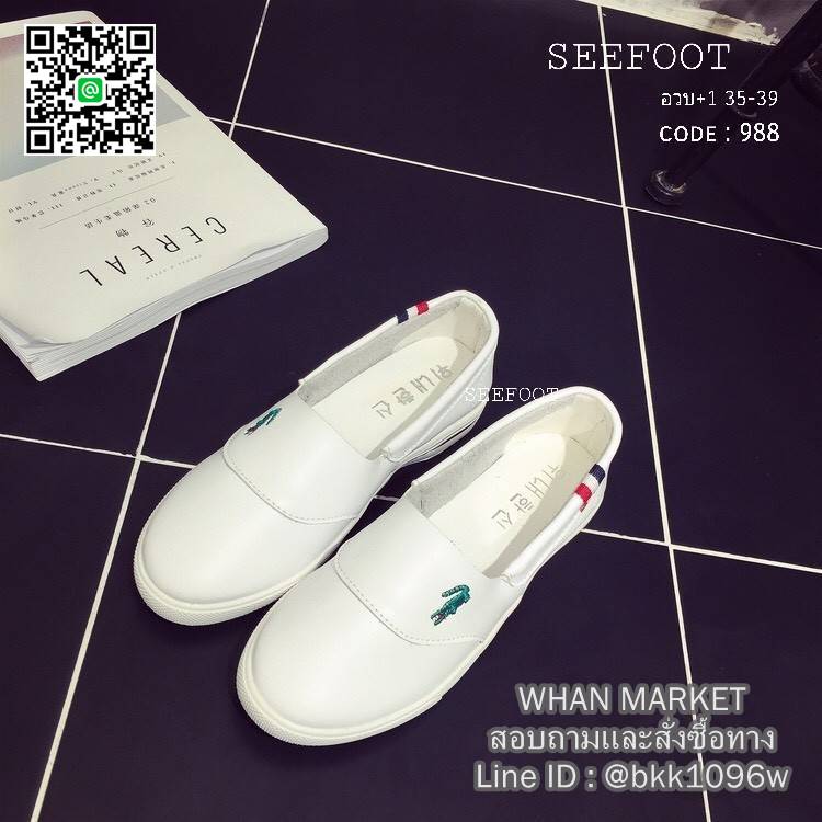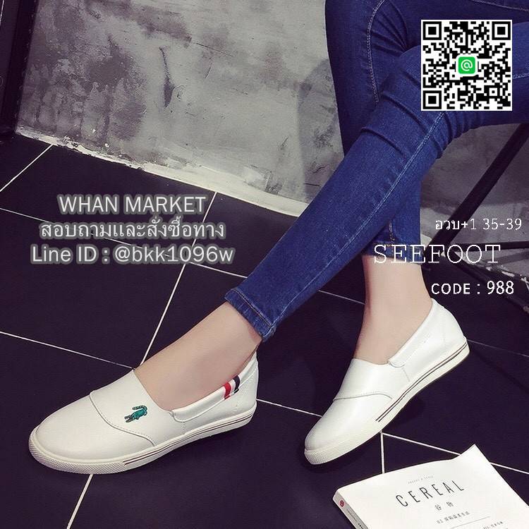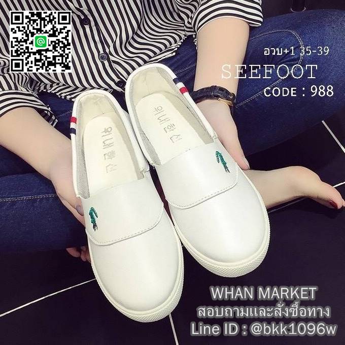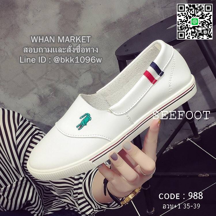 WhanMarketรองเท้าผ้าใบหนัง แบบสวม หัวกลม ใส่สบายๆ ปักจรเข้ งานหนัง PU อย่างดี เย็บซับด้านในหนังกลับนิ่มมาก พื้นยางกันลื้นอย่างดีคะ ไม่ต้องเสียเวลาผูกเชือก ใส่ง่ายถอดง่ายกระชับ เหมาะกับทุกวันคะ