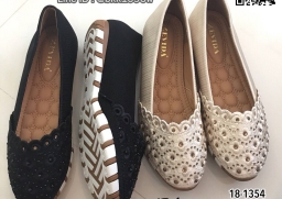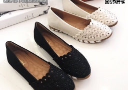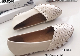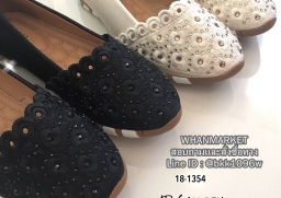 WhanMarketรองเท้าคัทชู วัสดุหนังฉลุลาย ประดับคริสตัลวิบวับ ด้านข้างวัสดุผ้าซาตินนิ่ม พื้นด้านในเย็บบุนวมนิ่ม ใส่สบายเท้ามากๆ เสริมความเก๋ด้วยส้นยางสีตาลสลับขาวหนา 1 ซม. แมทซ์กับชุดสวยๆเข้ากันอย่างลงตัว