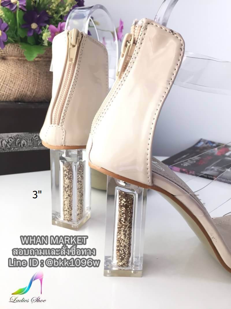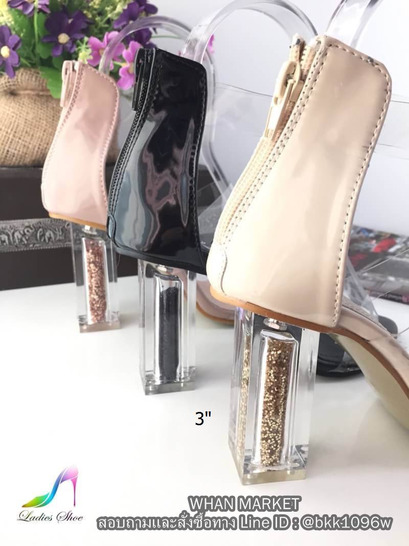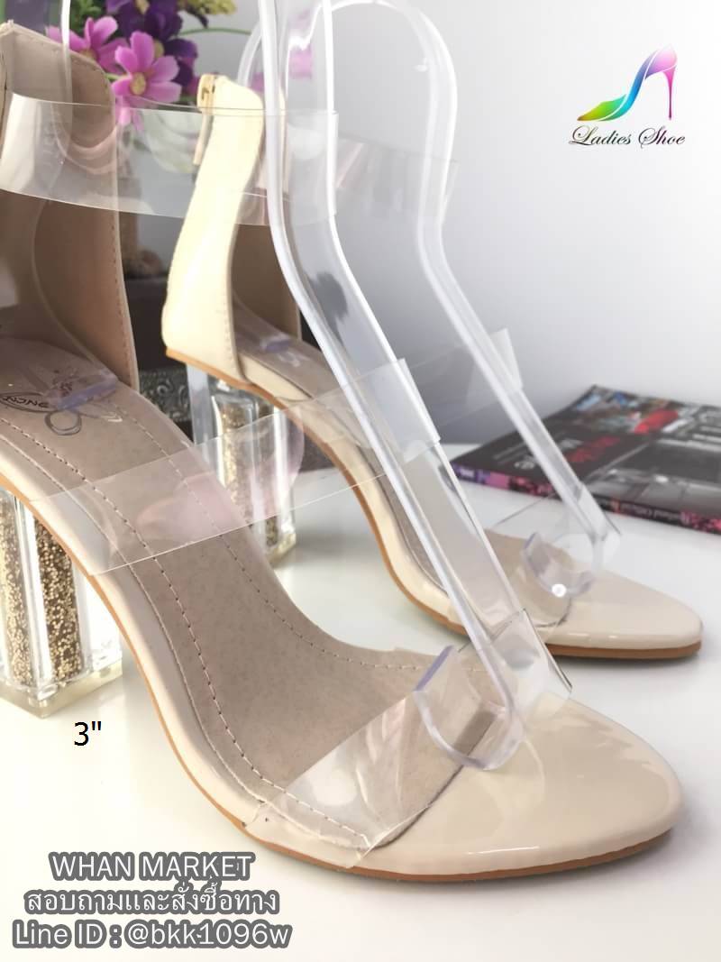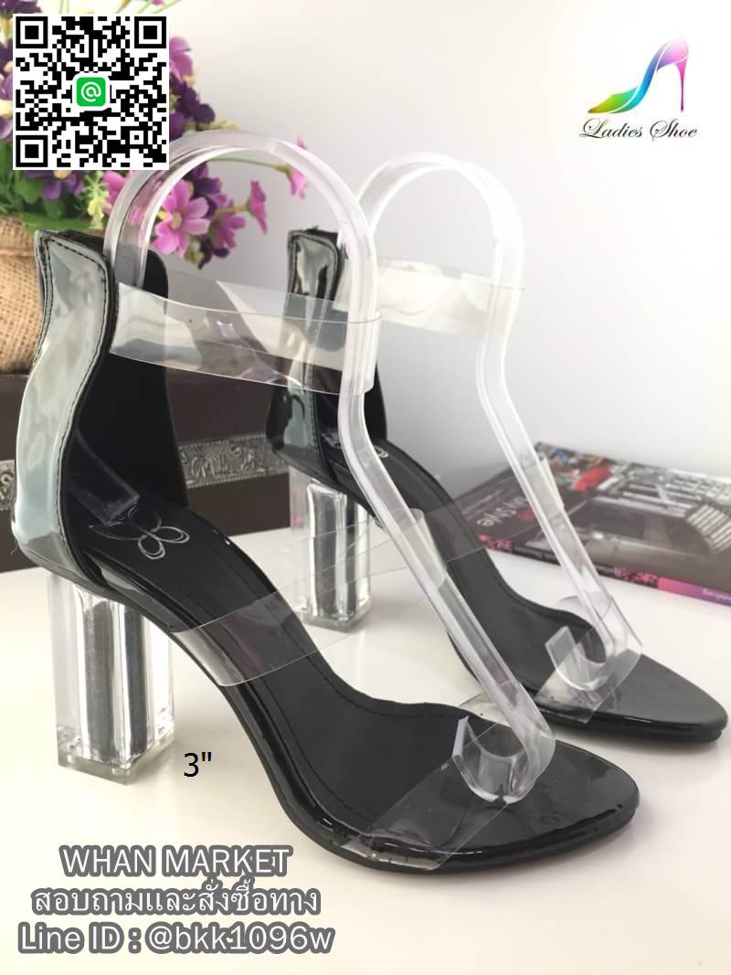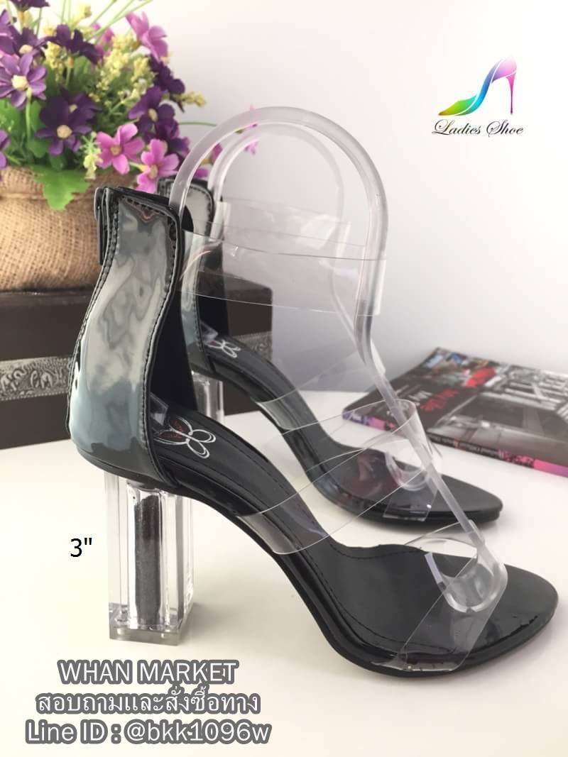 WhanMarketรองเท้าส้นสูงแฟชั่น แบบรัดข้อ ซิปหลัง วัสดุซิลิโคนนิ่ม 3เส้น ทรงเปิดเท้า ส้นอะคริลิคใส สูง3 นิ้ว แต่งกริสเตอร์ด้านใน ดูไฮสุดๆค่ะ