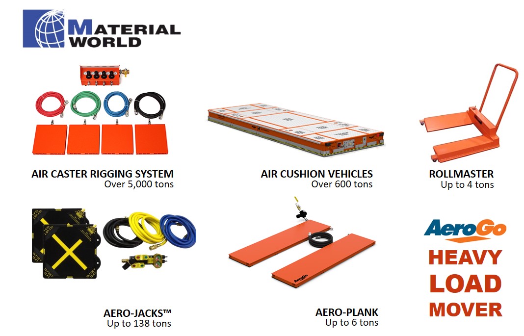 AeroGo Heavy Load Mover อุปกรณ์เคลื่อนย้ายเครื่องจักรขนาดใหญ่จากสหรัฐอเมริกา ด้วยเทคโนโลยีที่ได้รับความไว้วางใจมามากกว่า 40 ปีที่ช่วยให้การขนย้ายเครื่องจักร และวัตถุขนาดใหญ่ในโรงงานสามารถทำได้สะดวกยิ่งขึ้น โดยไม่ทำให้พื้นผิวเกิดความเสียหาย สามารถยกเครื่องจักรและวัตถุขนาดใหญ่สูงสุด 5,000 ตันได้อย่างง่ายดาย ตอบโจทย์การเคลื่อนย้ายครอบคลุมทุกอุตสาหกรรม อาทิ ยานยนต์ อากาศยาน ปิโตรเคมี และสถานที่จัดการแสดงต่างๆ เป็นต้น