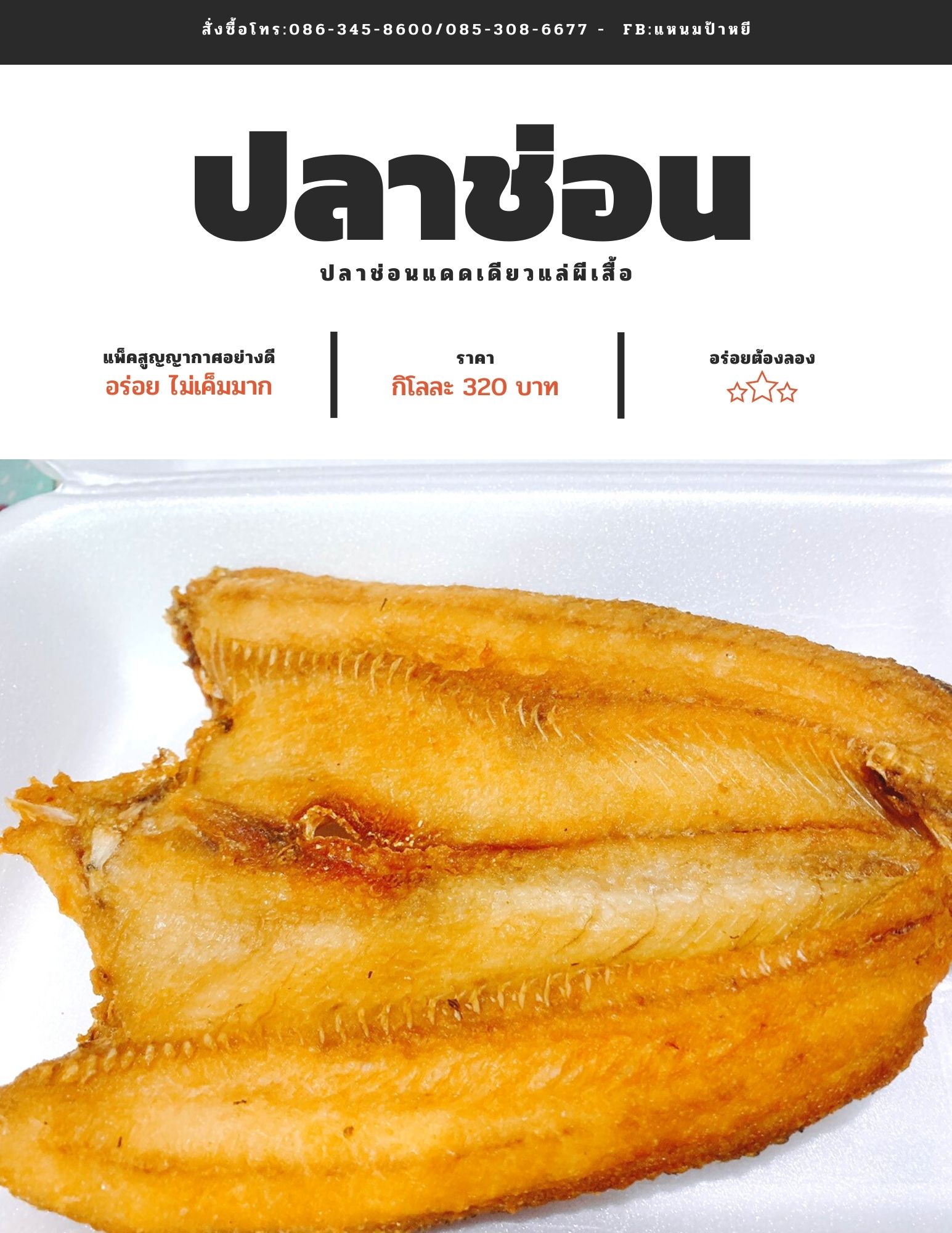 • ปลาช่อนแดดเดียว แล่ผีเสื้อแผ่นใหญ่