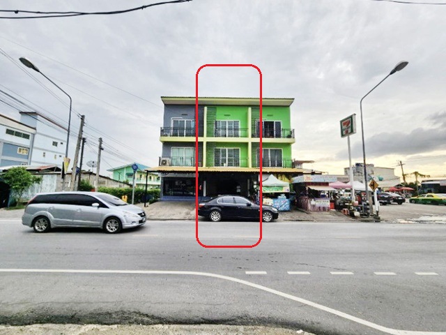 for rent 3Storeys Commercial building Synphaet Hospital LamLukKa Klong3-4 BTS KhuKhot 2km. cafe style 18sq.wa. 205sq.m. 12,999B-M open storefront 3bed 3bath 1A/C parking for many cars next to the main road Sapphan Market.