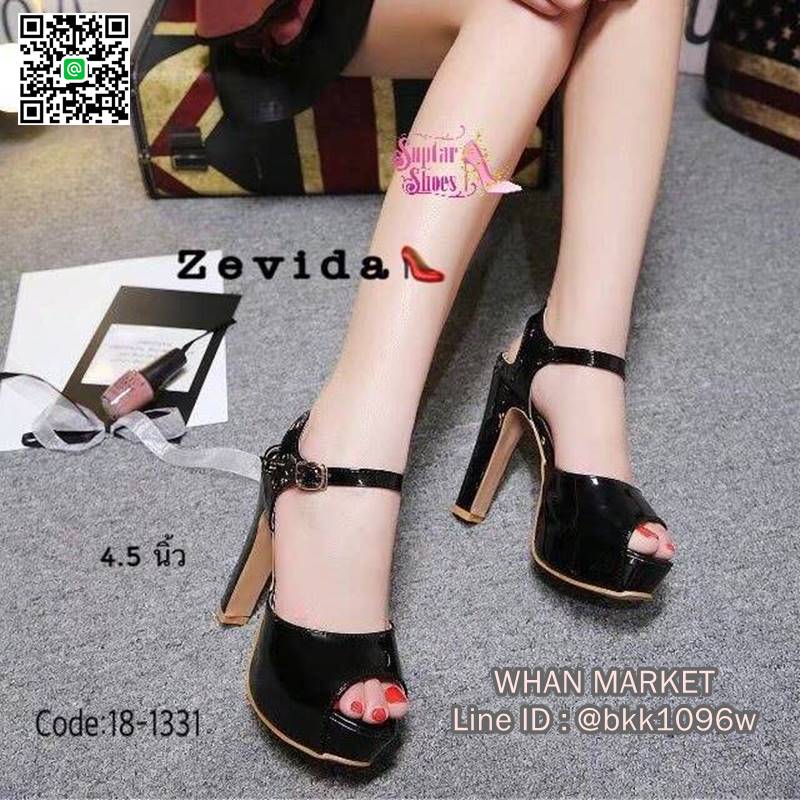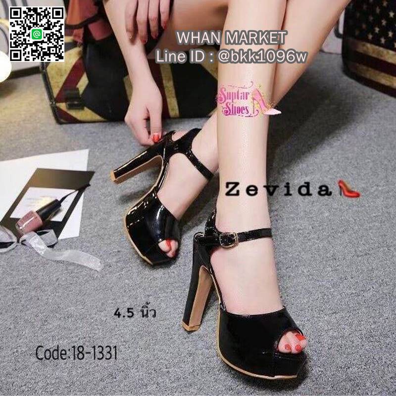 WhanMarketรองเท้าส้นสูง รัดข้อ เปิดหน้าหลัง วัสดุหนังPUเงา สวยแวววาว พื้นนิ่ม สายแบบตะขอเกี่ยวปรับขนาดได้ ใส่ถอดง่าย ส้นสูง 4.5 นิ้ว จัดไปให้ไว ใส่แล้วสวยมากจร้า
