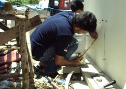 ใช้ปั้มน้ำแรงดันสูงฉีดอัดล้างท่อน้ำทิ้ง และชิ้นส่วนต่างๆ อย่างละเอียด
