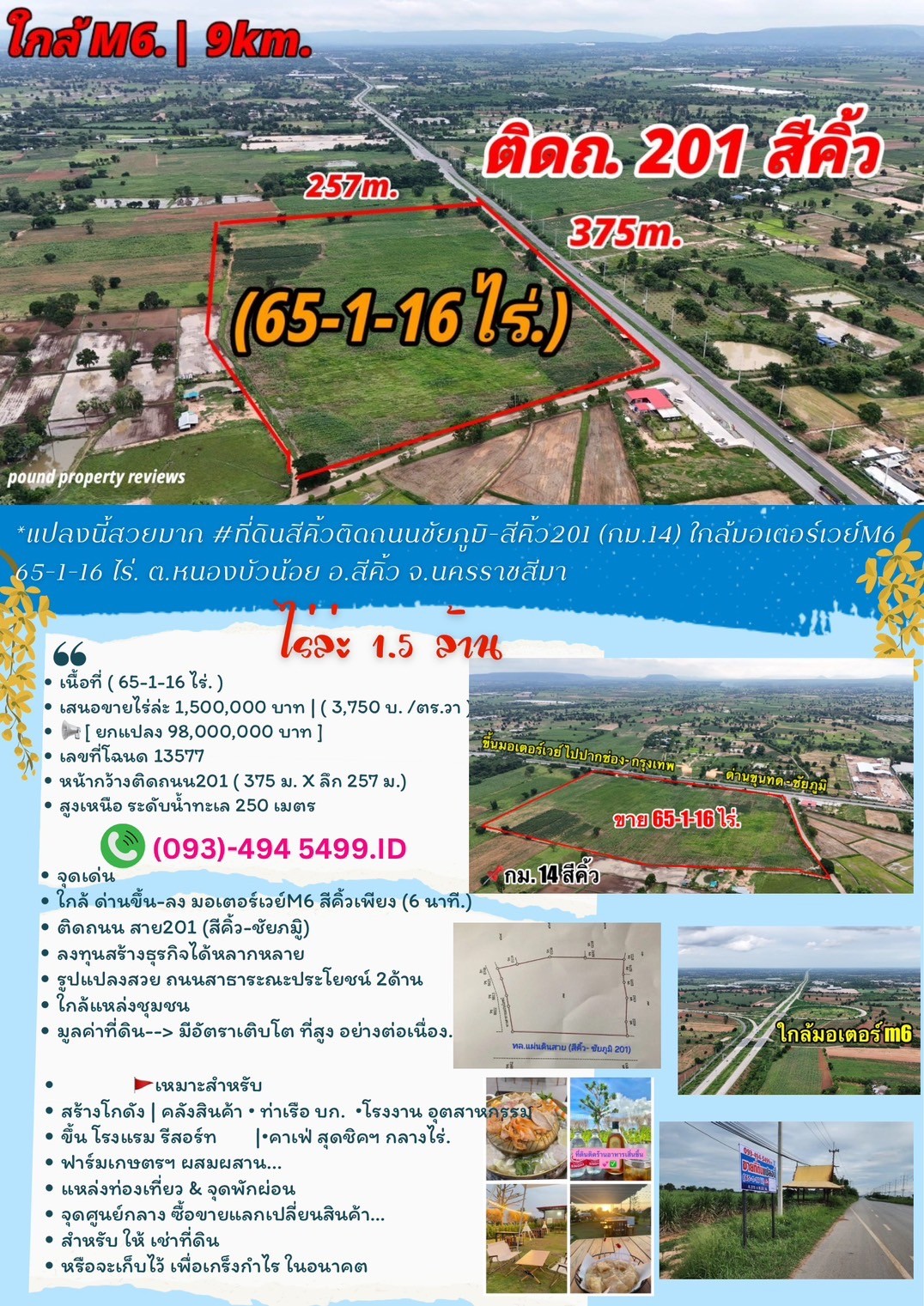 ชมรีวิว : ติดถนน201สีคิ้ว [ 65-1-16 ไร่. ] 3,750 บ. /วา.แปลงมุม ( กม.14) (ใกล้.M6 ) ตอบโจทย์ใน ทุกๆธุรกิจ. สวย