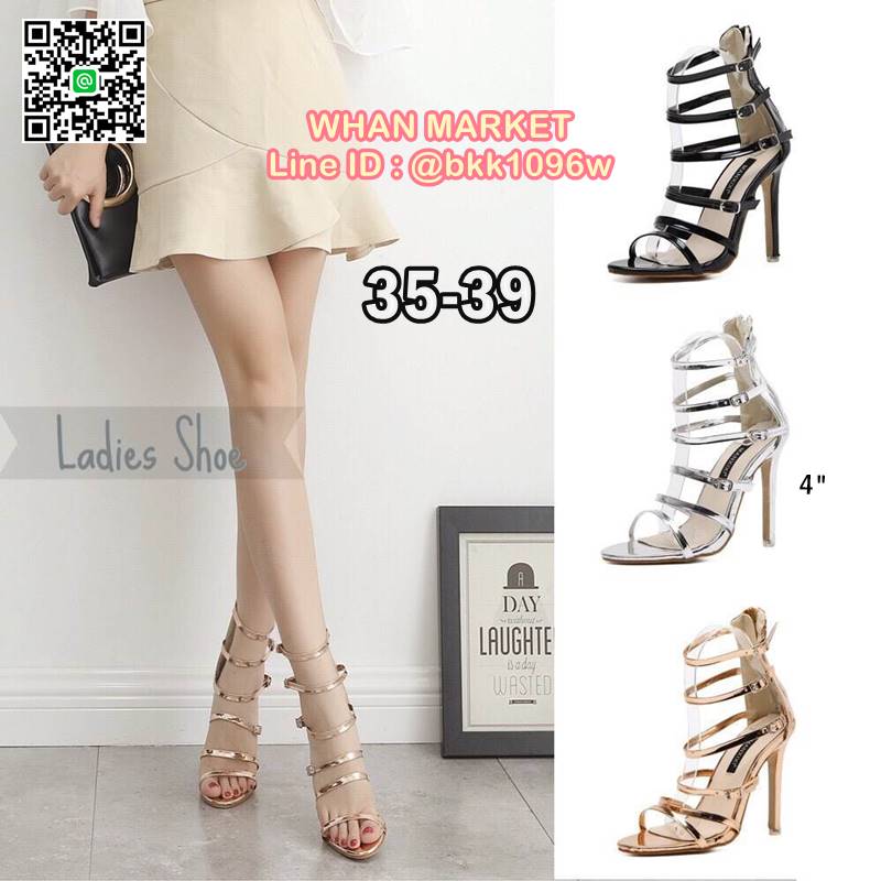 WhanMarketรองเท้าแฟชั่น ส้นสูง 4 นิ้ว แบบเกดิเอเตอร์ วัสดุหนังแก้วคุณภาพดี แบบรัดข้อ ซิปหลัง ใส่ง่าย สายแบบเข็มขัดปรับความกระชับได้ แบบแมทง่าย ใส่สวยดูโดดเด่น ใส่เที่ยว ใส่ทำงาน ใส่ออกงาน คู่เดียวคุ้มสุดๆค่ะ
