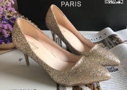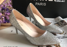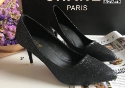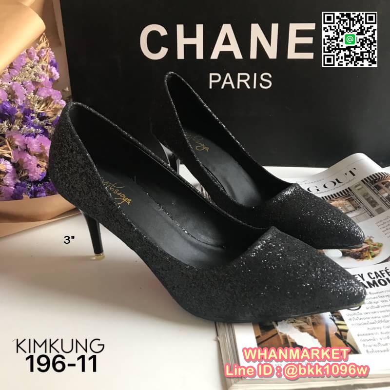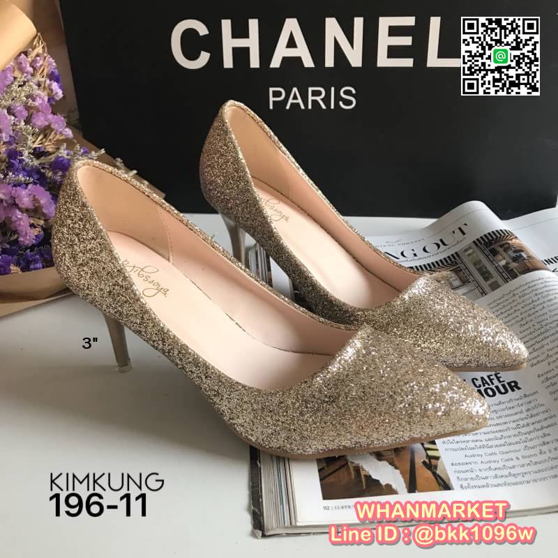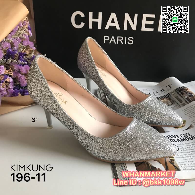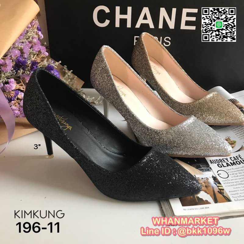 WhanMarketรองเท้าคัทชู ส้นสูง3 นิ้ว วัสดุหนัง PU คุณภาพดี แต่งกลิตเตอร์ ดูหรู ใส่ทำงาน ใส่เที่ยว ใส่ออกงาน คุ้มสุดๆ ส้นไม่สูงมาก ระยิบระยับ เริ่ดคะ