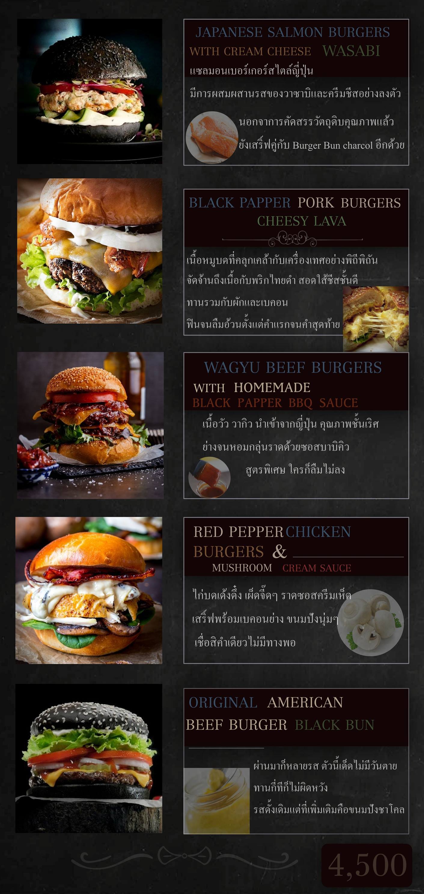 วัตถุดิบและคุณภาพแล้วยังเสิร์ฟคู่กับBurger Bun Charcolอีกด้วย
