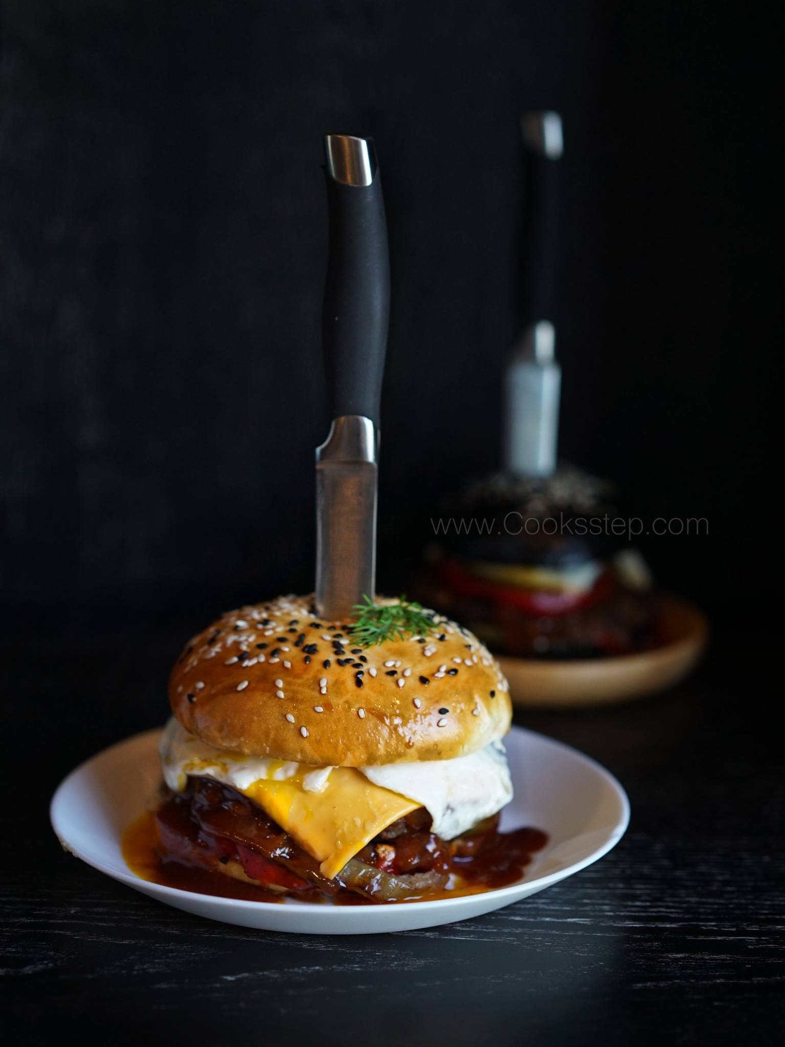 Wagyu beef burger with homemade black pepper BBQ sauce