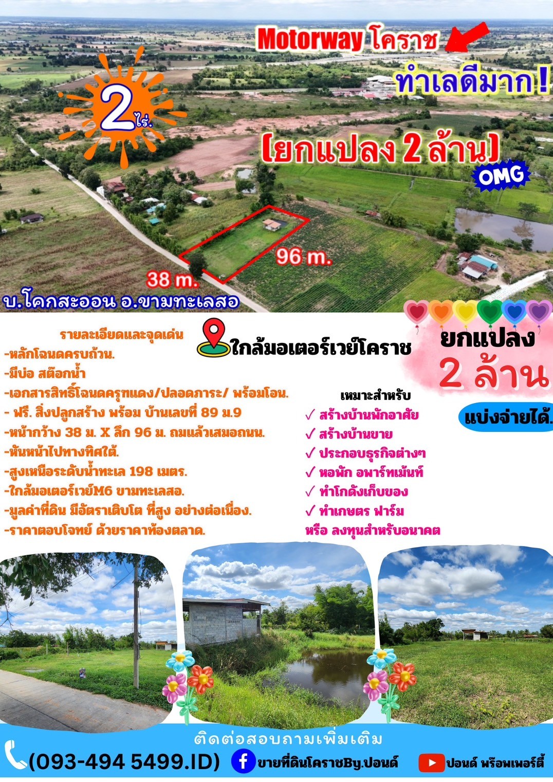 ฑิฆัมพร ขำหมื่นไวยที่ดินติดMoterWayขามทะเลสอ| 2 ไร่. พร้อมบ้าน | ( 2,500 บ./ตร.ว.) | เพียง 2 ลบ. | ✓(สามารถแบ่งจ่ายได้..2งวด ) ขามทะเลสอโคราช.