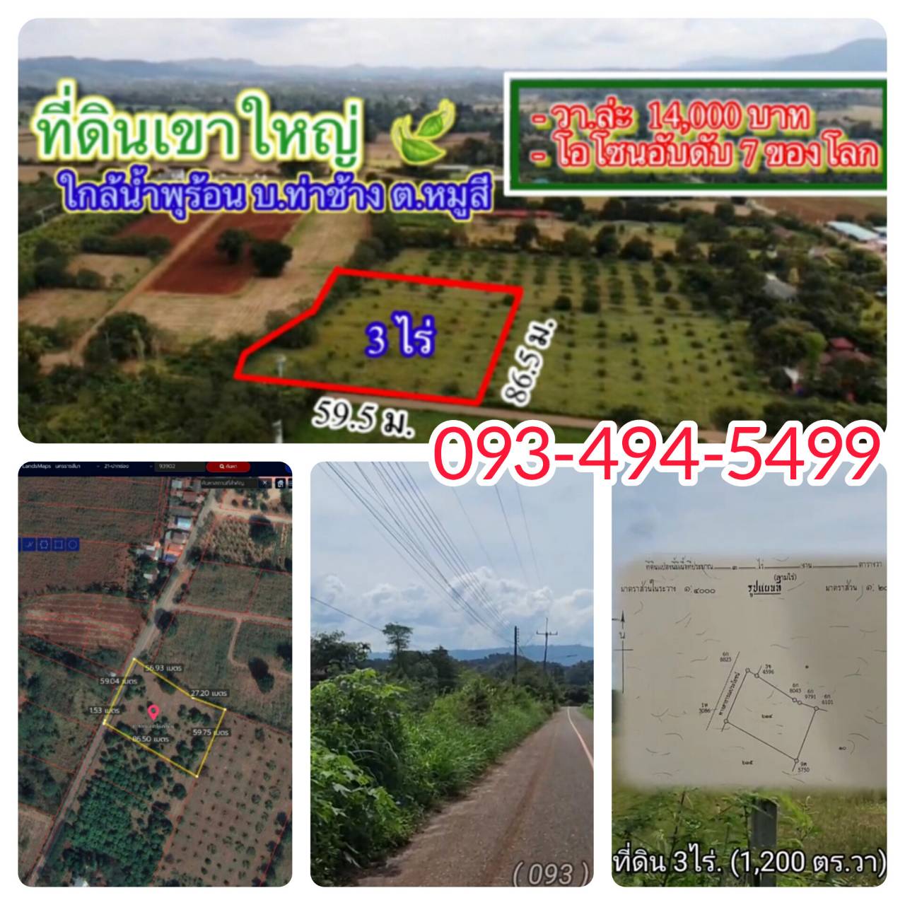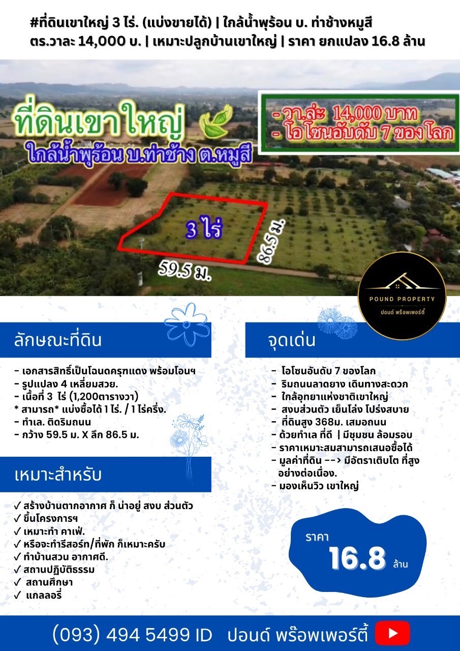 ฑิฆัมพร ขำหมื่นไวยที่ดินเขาใหญ่ 3ไร่.(ขายแบ่งครึ่งได้) | ใกล้น้ำพุร้อน บ. ท่าช้างหมูสี | ตร.วาล่ะ 13,000บ. L028