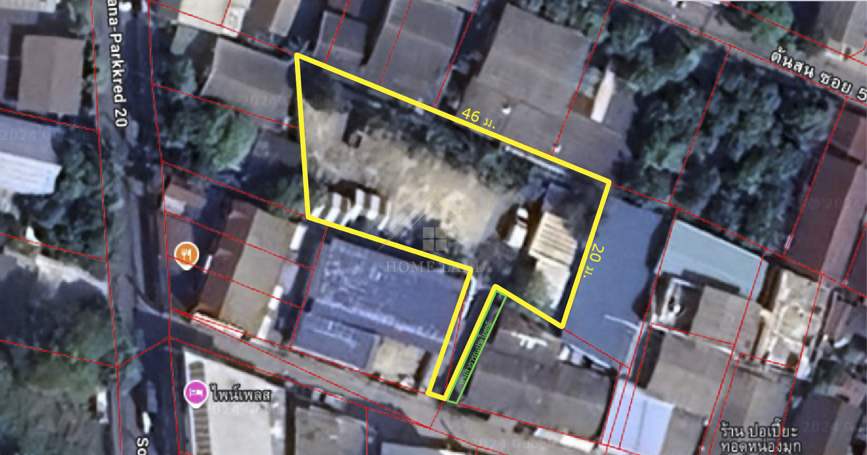 - หน้ากว้าง 46 เมตร ลึก 20 เมตร ทางเข้าที่ดิน 4 เมตร