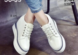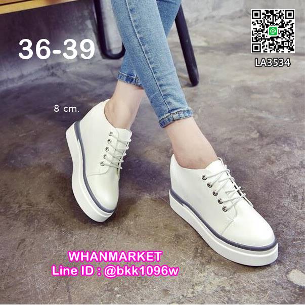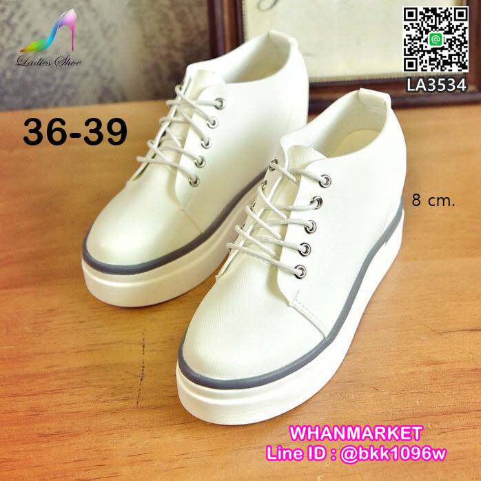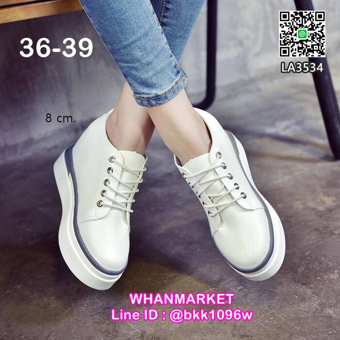 WhanMarketรองเท้าเสริมส้น แฟชั่นเกาหลี แบบผูกเชือก วัสดุหนังPU กระชับเข้ารูป ส้นสูง 8 cm เสริมหน้า 3 cm ใส่สบาย หัวกลม ไม่บีบหน้าเท้า ใส่เรียบๆดูเท่เก๋ระเบิดไปเลยคร้า