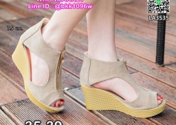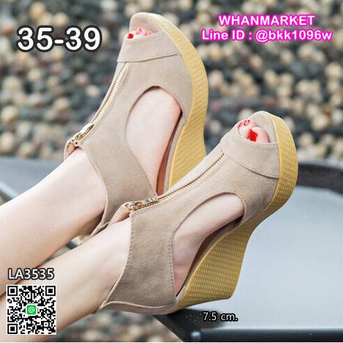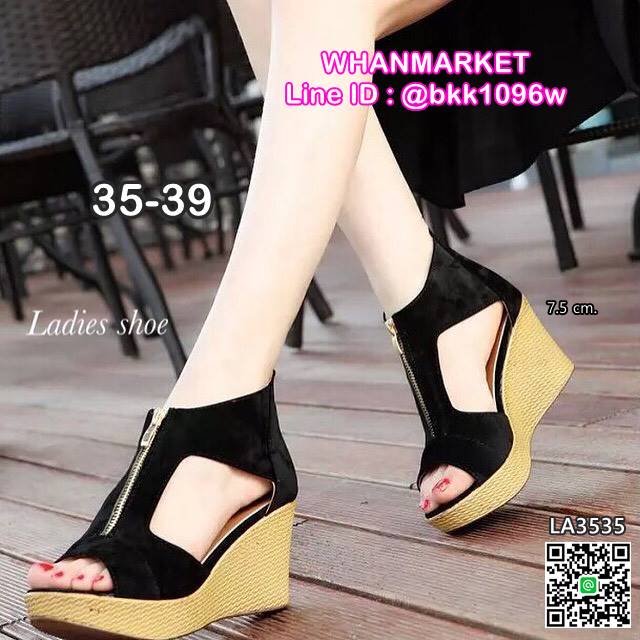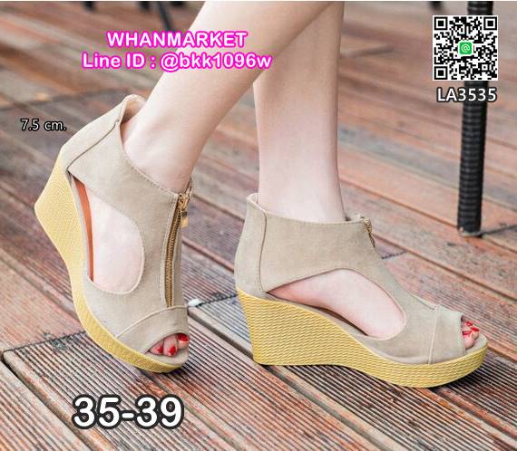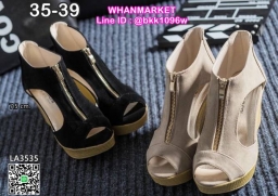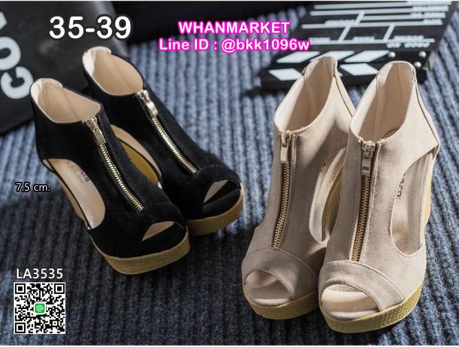WhanMarketรองเท้าส้นเตารีด ทรงบูท เปิดหน้า วัสดุหนังกลับ มีซิปหน้า ใส่ง่าย พื้นปั้มลายสาน ส้นสูง 7.5 cm สูงกำลังดี ใส่สบาย กระชับเท้า ใส่แล้วดูขาเรียวสวย สาวๆรีบจัดด่วนๆกันเลยจ้า