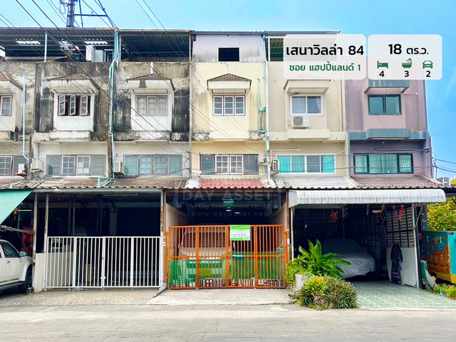 เดย์ อสังหาขายอาคารพาณิชย์ 3 ชั้น หมู่บ้าน เสนาวิลล่า 84 - ซอยแฮปปี้แลนด์ 1 (หลังมุม ติดช่องกลับรถ) เหมาะสำหรับค้าขาย/เปิดสำนักงาน/ที่อยู่อาศัย แถม แอร์ ปั๊มน้ำ และ แทงค์น้ำ ! ใกล้รถไฟฟ้าสายสีเหลือง เนื้อที่ 18 ตร.ว. ขายเพียง 3,490,000 ล้านบาท