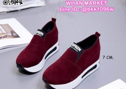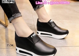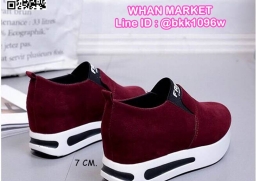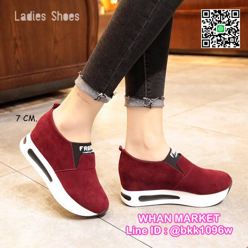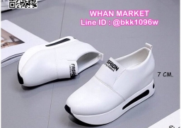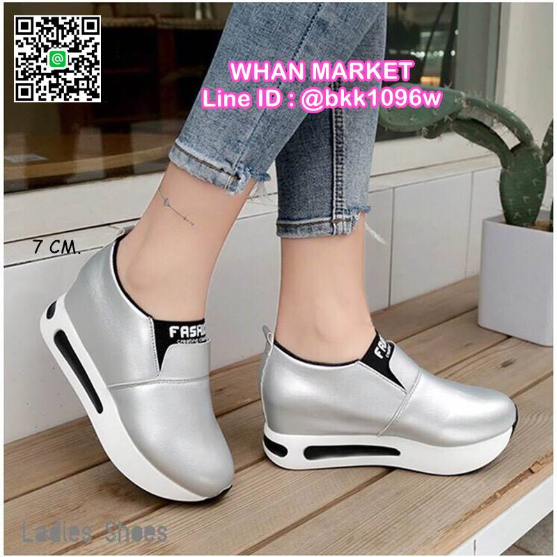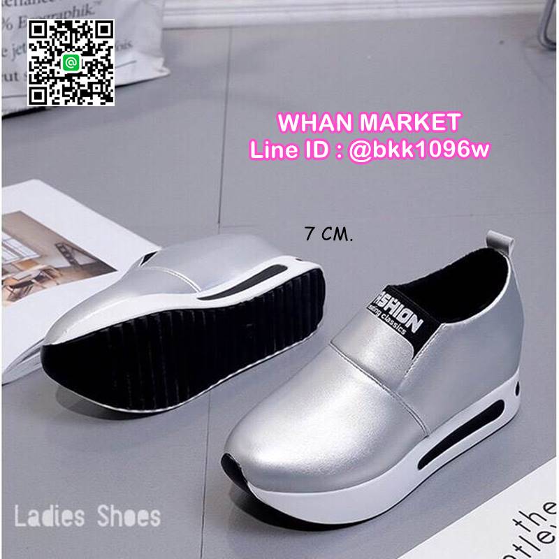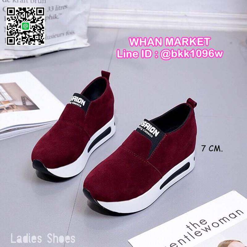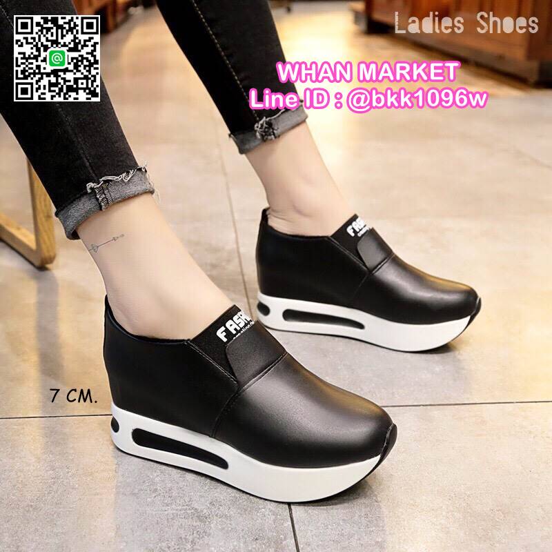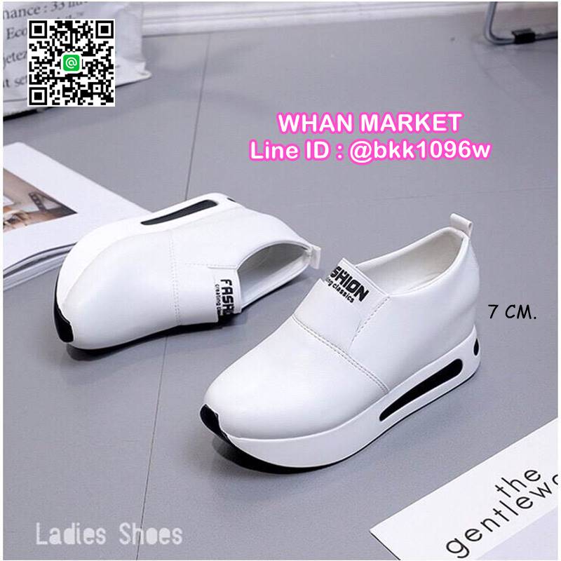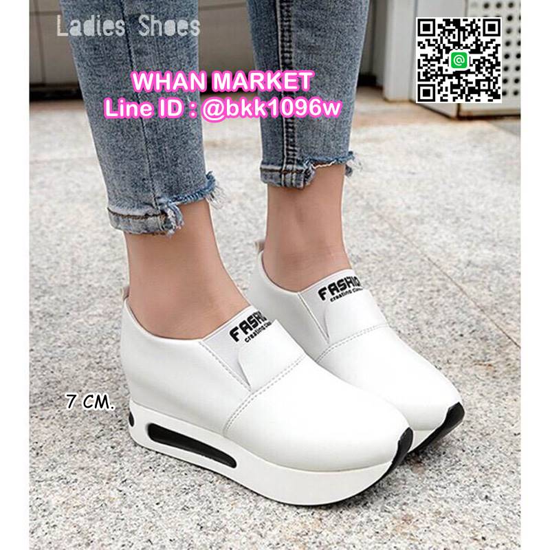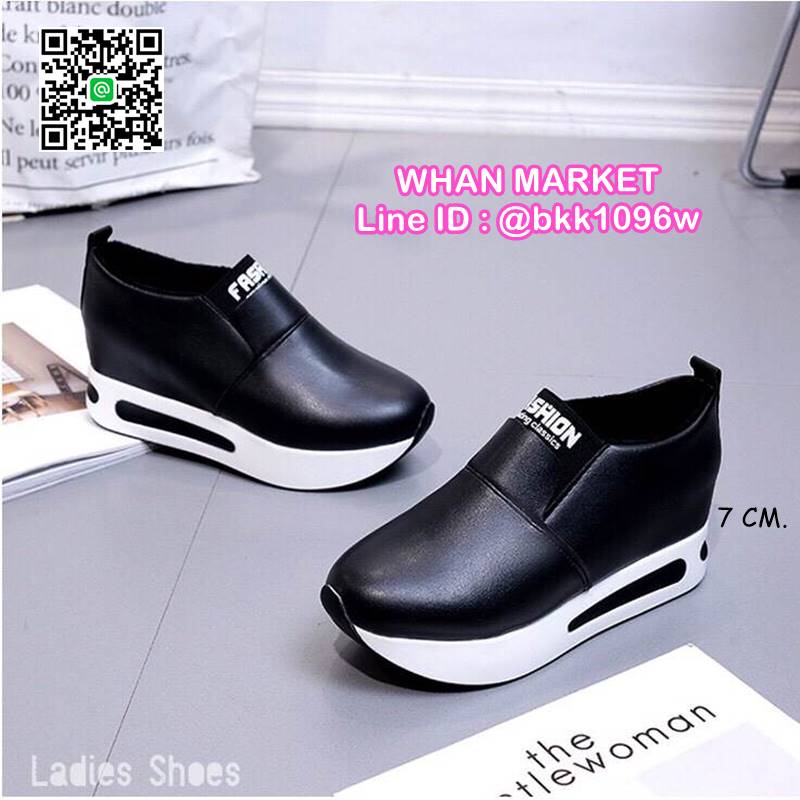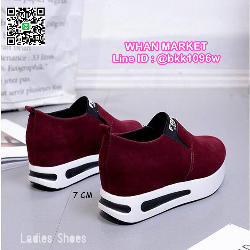 WhanMarketรองเท้าผ้าใบเสริมส้น ทรงสวม Slip on วัสดุหนังPU เสริมส้น 7 cm หน้าสูง 3.5 cm น้ำหนักเบา ใส่กระชับเท้า ทำความสะอาดง่าย งานสวย สั่งเลยจ้า