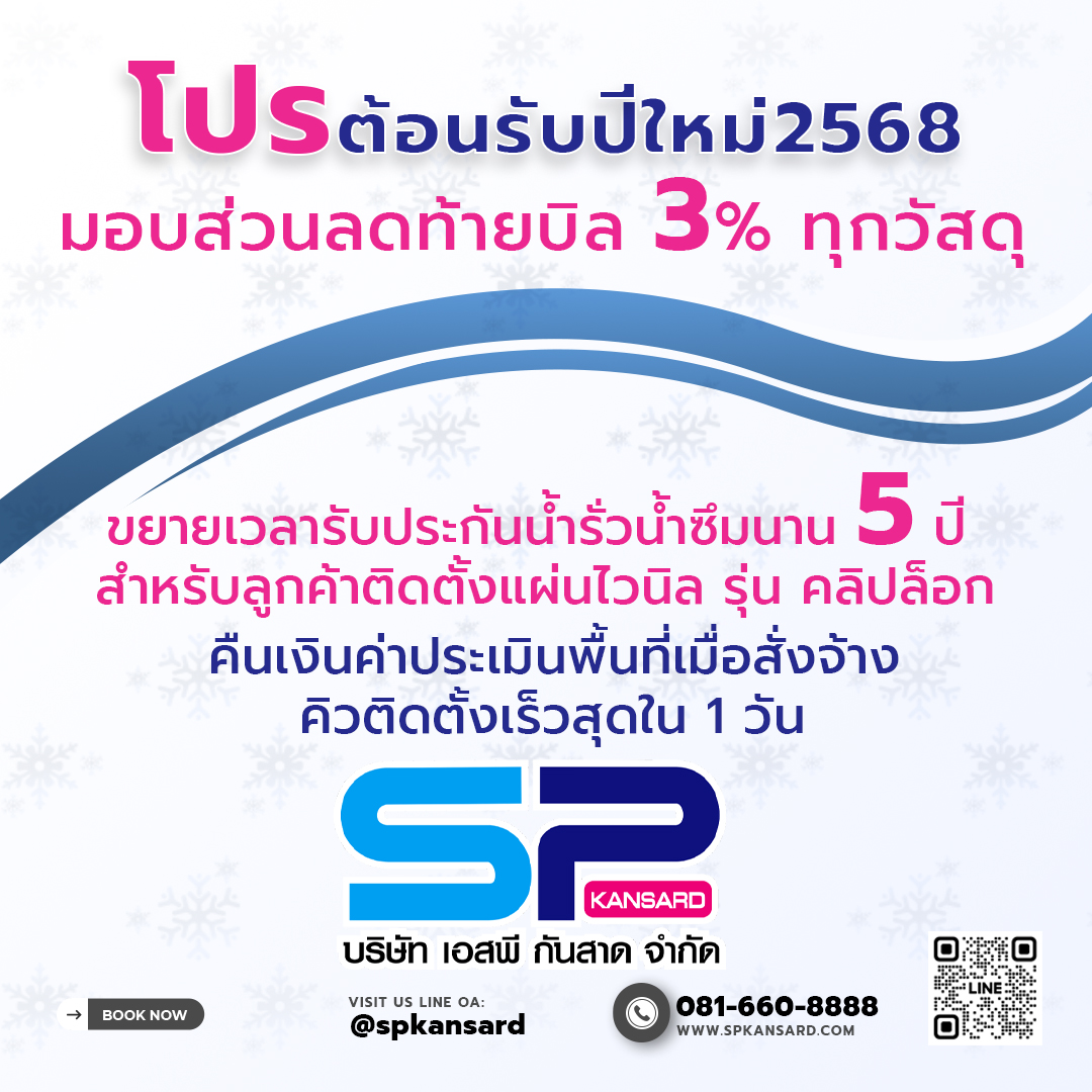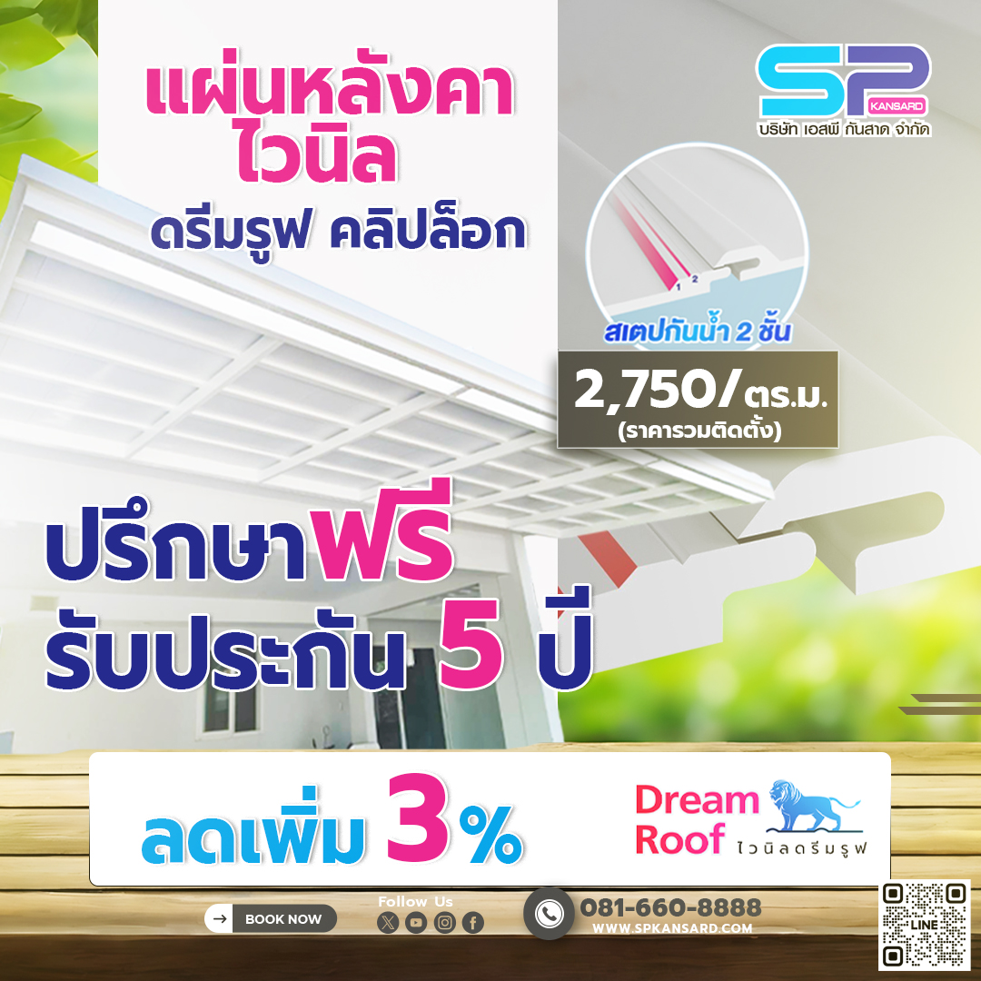 ????ขยายเวลารับประกันน้ำรั่วน้ำซึมนาน 5 ปี สำหรับลูกค้าติดตั้งแผ่นไวนิล รุ่น คลิปล็อก