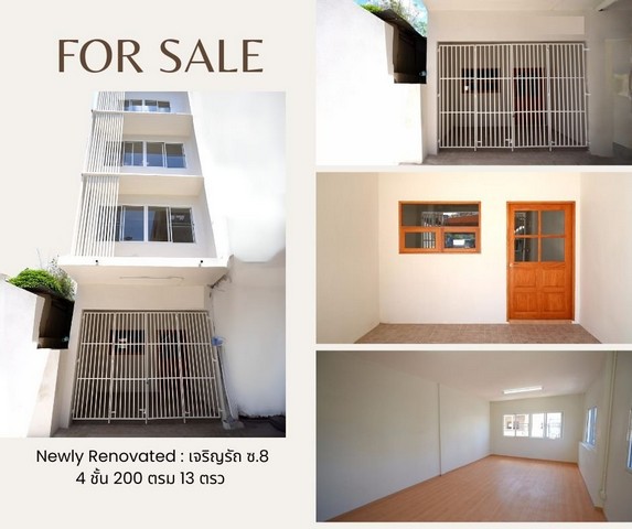 เนื้อที่ 13 ตารางาว พื้นที่ใช้สอย 200 ตารางเมตร จำนวน4 ชั้น 3 ห้องน้ำ ที่จอดรถ 1 คัน
