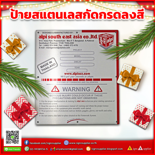 ป้ายสแตนเลสกัดกรดลงสี คุณภาพดี