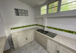 - ครัวต่อเติม พร้อมเคาน์เตอร์ เตาแก๊ส เครื่องดูดควัน ปั๊มน้ำ และแท็งก์น้ำ