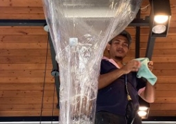 ใช้ปั้มน้ำแรงดันสูงฉีดอัดล้างท่อน้ำทิ้ง และชิ้นส่วนต่างๆ อย่างละเอียด