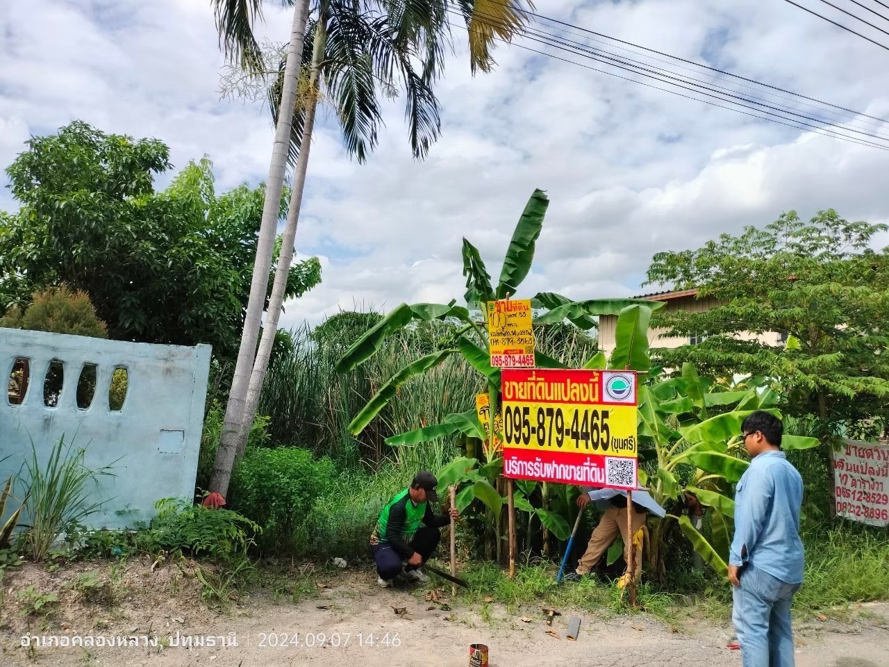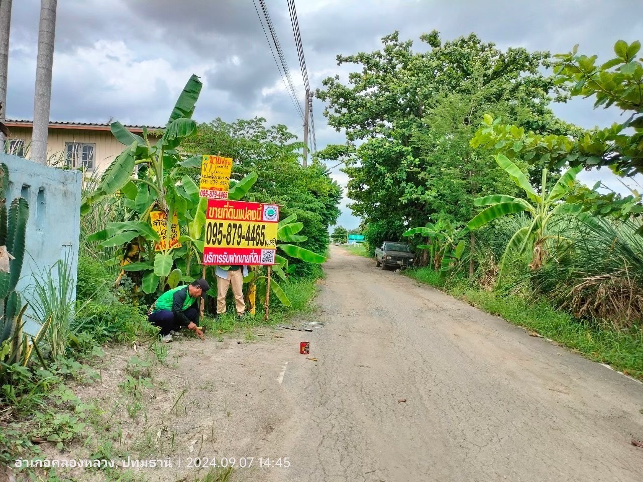 จากถนนเลียบคลองสอง 600 ม.(ที่ดินจะอยู่ทางด้านซ้ายมือ/มีป้าย)
