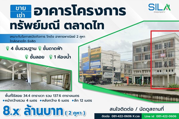 ให้เช่าพื้นที่ อาคารพาณิชย์ 2 คูหา ใกล้ตลาดไท รังสิต
