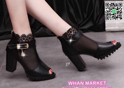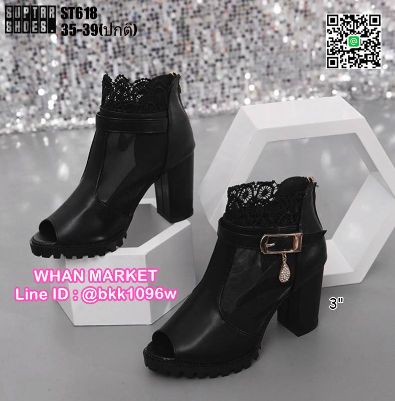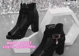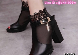 WhanMarketรองเท้าบูทหุ้มข้อเปิดหน้า งานนำเข้า แบบสไตล์เกาหลี วัสดุPUหนังนิ่ม แบบเก๋เท่ sexy ด้วยตรงข้อหุ้มผ้าลูกไม้ มีสายคาดเข็มขัดปรับขนาดได้ ด้านข้างผ้ามุ้งระบายอากาศได้ดี เหมาะกับเมืองไทย พื้นนุ่มใส่สบาย น้ำหนักเบา ส้นแท่ง ใส่เดินสบาย มึซิปหลัง ใต้พื้นกันลื่น เสริมหน้า 0.5 นิ้ว ส้นหลัง 3 นิ้ว ใส่แล้วสวยเท่ แมทกับชุดได้ง่าย จัดด่วนนนเลยจร้าาา...