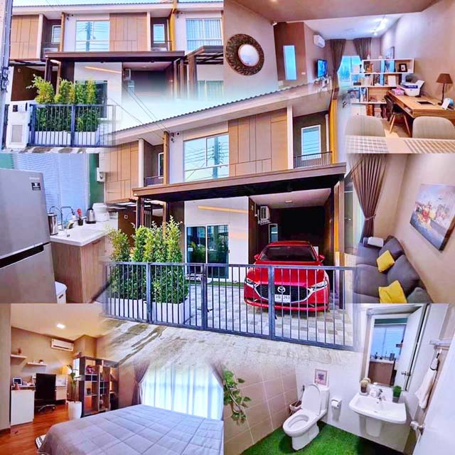 fully furnished Lux SamWa Hathairat BIG C Suwinthawong Tesco Lotus Minburi 900m. For rent for sale 2-storey townhouse 3 bed 2 bath good environment quiet safe 18 sq.w.145 sq.m. Josuikan International School Bangkok 3.8 km. 25,999 B-M For sale 3.49 million baht Nawamin Hospital 1.5 km.Many entrances and exits Suwinthawong Rd.Nimitmai Hathai Rat MRT Minburi Market 1.3 km.
