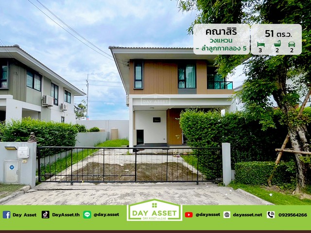 เดย์ อสังหาขายบ้านเดี่ยว 2 ชั้น หมู่บ้าน คณาสิริ (วงแหวน-ลำลูกกาคลอง 5) เนื้อที่ 51 ตร.ว. ขายเพียง 3,490,000 ล้านบาท