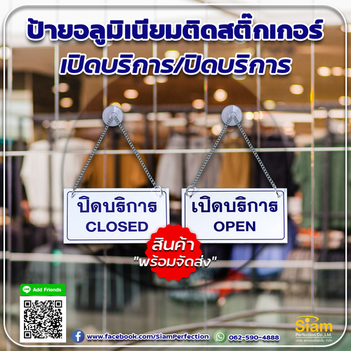 ป้ายอลูมิเนียมติดสติกเกอร์ เปิดบริการ ปิดบริการ สวยงาม คุณภาพดี