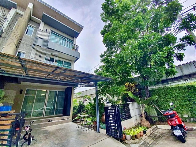Krungthep Kreetha 5-9 Brighton College Bangkok 1.2 km. Lamsalee Market 1.7 km. 3-storey townhouse on corner 3bed 3bath Modern luxury style 35sq.w. 420sq.m. 44,999 B-M Quiet atmosphere not crowded safe fully furnished convenient transportation MRT Sri Burapha 1.7 km