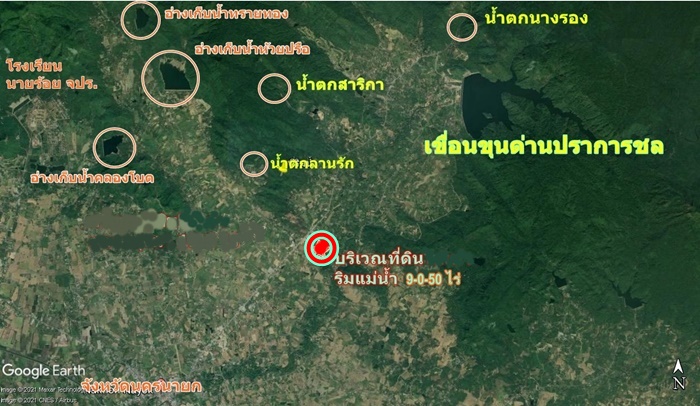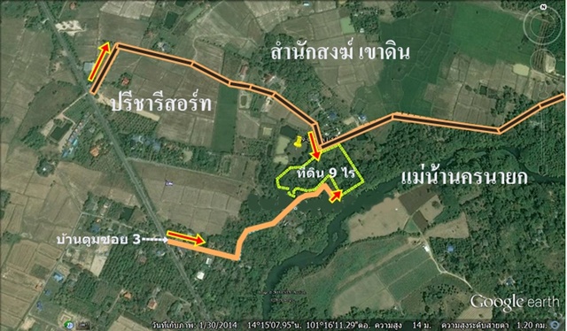 ข้ามคลองเข้าถึงที่ น้ำ ไฟฟ้า พร้อมหาที่แบบนี้ยากมาก เพราะเป็นที่สูง ในปี 2558 และปี 2564 น้ำท่วมริมฝั่งแม่น้ำนครนายก